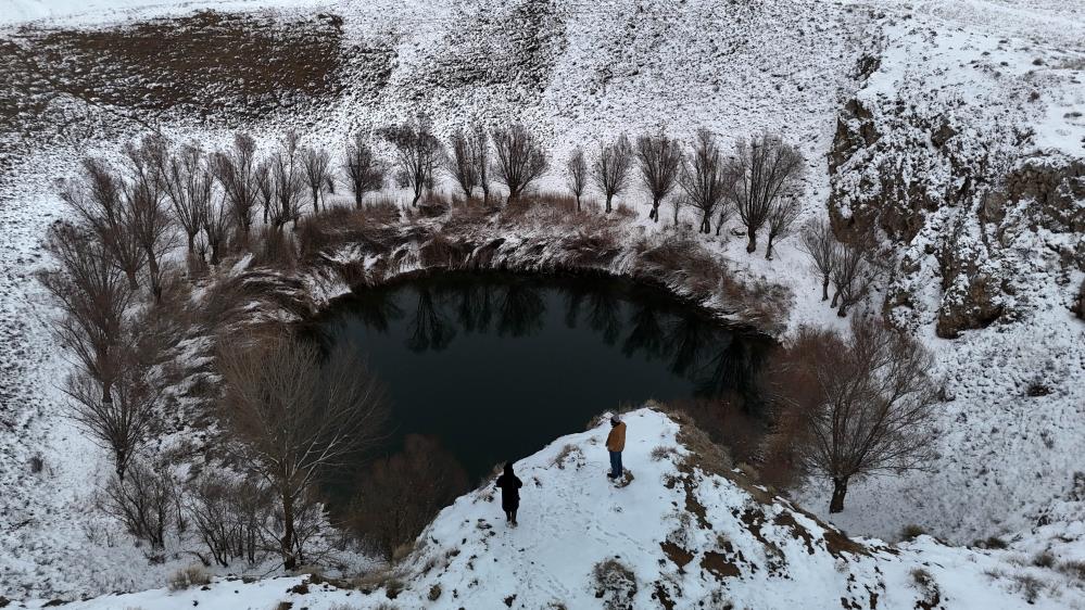 Sivas"ın Zara ilçesinde yan yana yer alan ve iki gözü andıran Ağgöl ile Karagöl, beyaz örtüyle birlikte masalsı bir güzelliğe büründü.