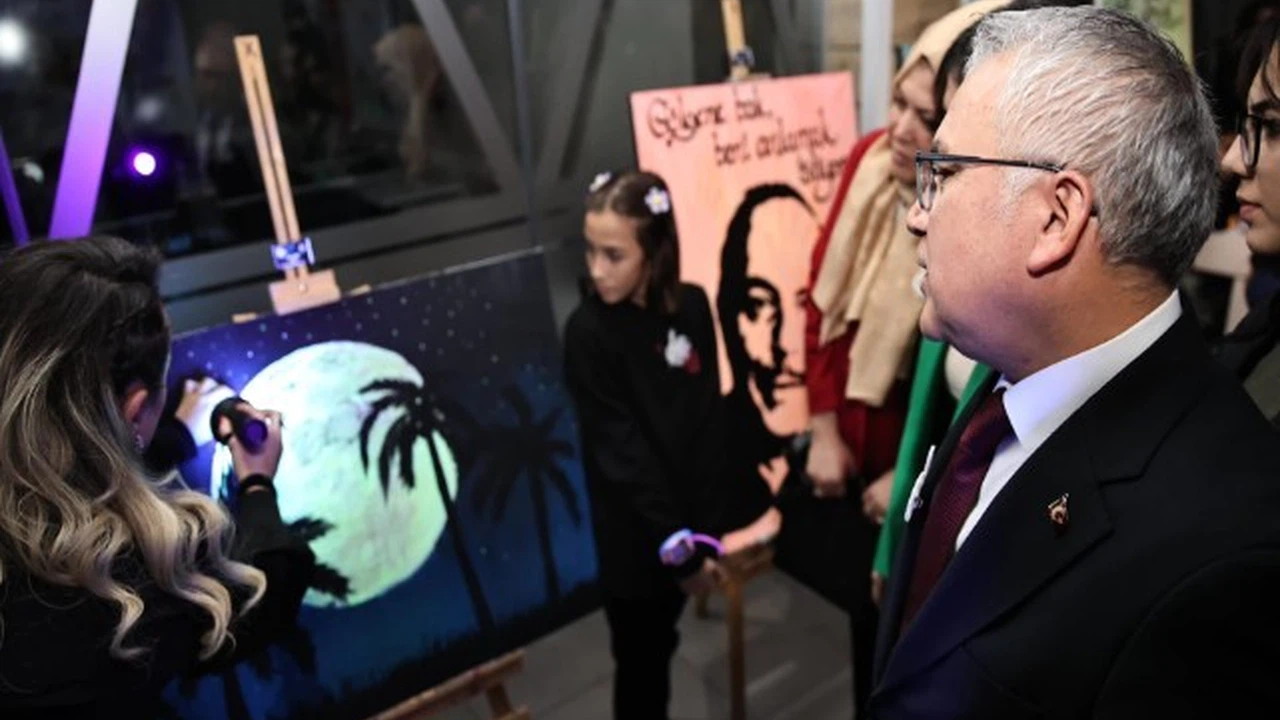 Bu özelliğiyle karanlıkta görünür olan resim çalışmaları büyük beğeni topladı. Vali Yılmaz Şimşek, serginin hazırlanmasında emeği olan öğrenci ve öğretmenleri tebrik etti.