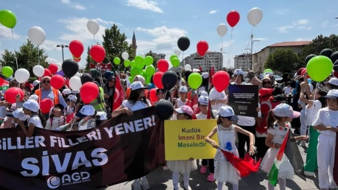 Anadolu Gençlik Derneği, Sivas Devlet Hastanesi önünden Kale Camii'ne kadar yapılan yürüyüşte öğrenciler Filistindeki zulmü kınamak için sloganlar attılar.