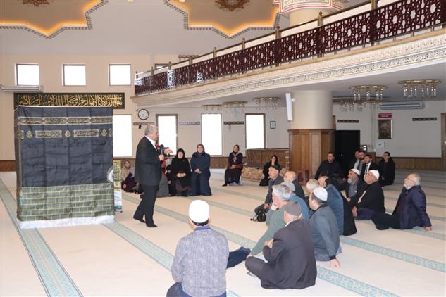 Ay Yıldız Camisinde yapılan programda umrecilere bilgi veren İl Müftüsü Ahmet Celalettin Altunkaya; “ Sizler Rahmanın seçtiği, kutsal topraklara davet edilen insanlarsınız. Çünkü imkanı olup da kutsal topraklara gidemeyen birçok insanımızın olduğu ortamda, kutsal topraklara gidiyor olmanız sizler için büyük bir nasip. Resulullah (s.a.v) Efendimiz hac ve umre yolculuğuna davet olmadan gidilemeyeceğini ifade ediyor.” dedi.