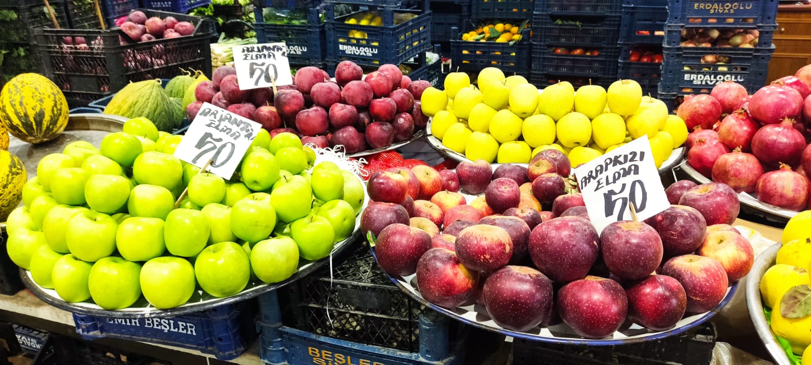 Elma, Armut ve Ayva: Sivas Meyve-Sebze Hali"nde bu üç ürün 50 TL"den satışa sunulurken, marketlerde de aynı fiyata alıcı buluyor. Genelde market fiyatlarının daha yüksek olması beklenirken, bu denge tüketicilerin kafasını karıştırıyor.