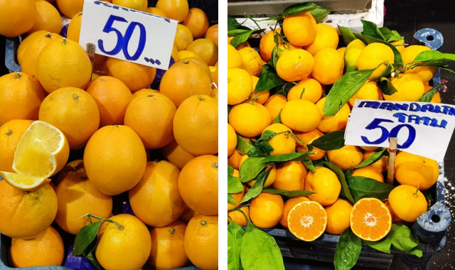 Portakal ve Mandalina: Portakal marketlerde 40 TL, mandalina ise hem markette hem halde 50 TL. Bu durumda haldeki fiyatların daha uygun olacağı düşüncesi geçerliliğini yitiriyor.