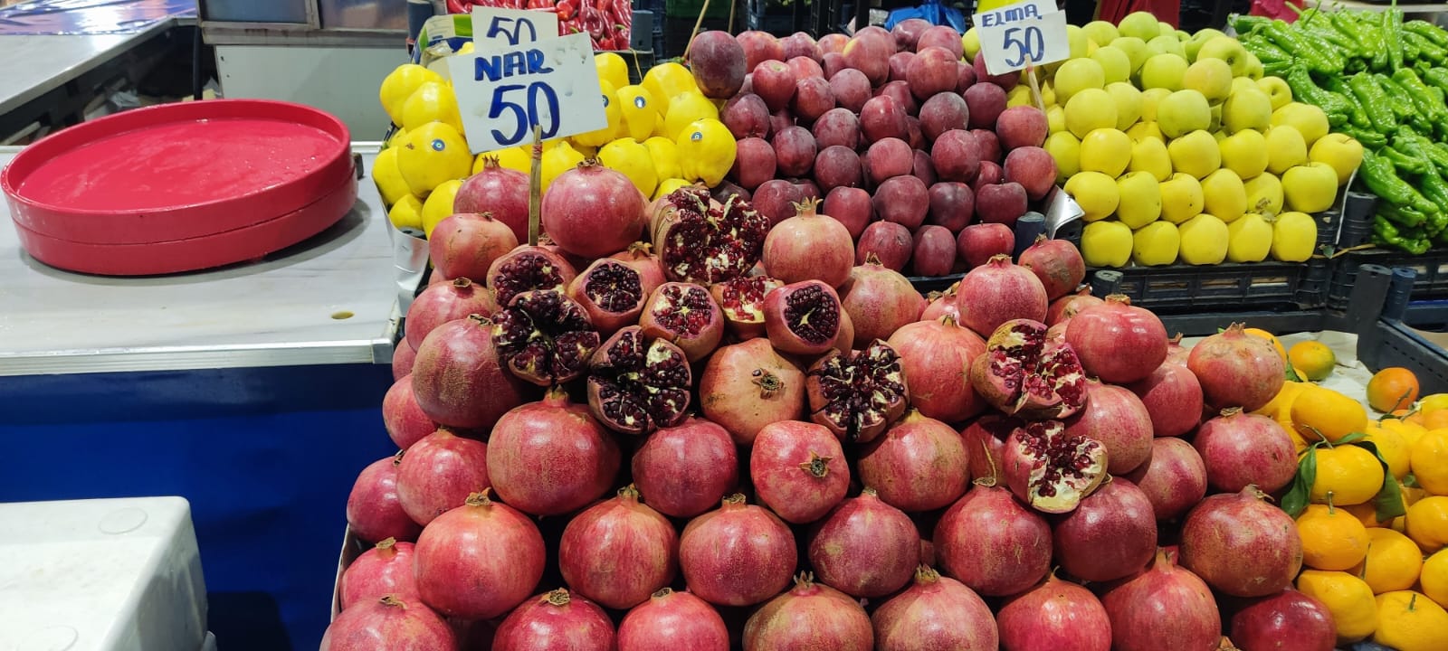 Nar ve Limon: Narın hal fiyatı 50 TL iken, marketlerde limon 30 TL"den satılıyor. Tüketiciler bu durumda markete yönelerek daha ekonomik seçenek arayabiliyor.