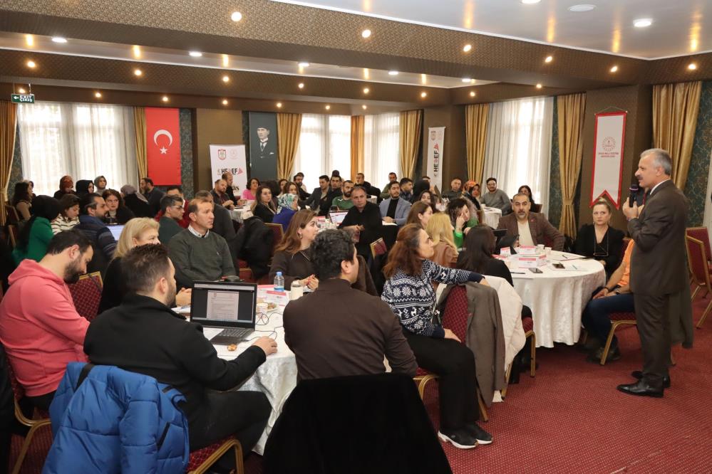Sivas"ta HEDEF Projesi kapsamında yürütülen ve uygulanması planlanan proje ve çalışmalar, HEDEF Projesi Uygulama ve Değerlendirme Çalıştayında masaya yatırıldı. Sivas Öğretmenevinde gerçekleştirilen çalıştaya farklı branşlardan 56 öğretmen katıldı.