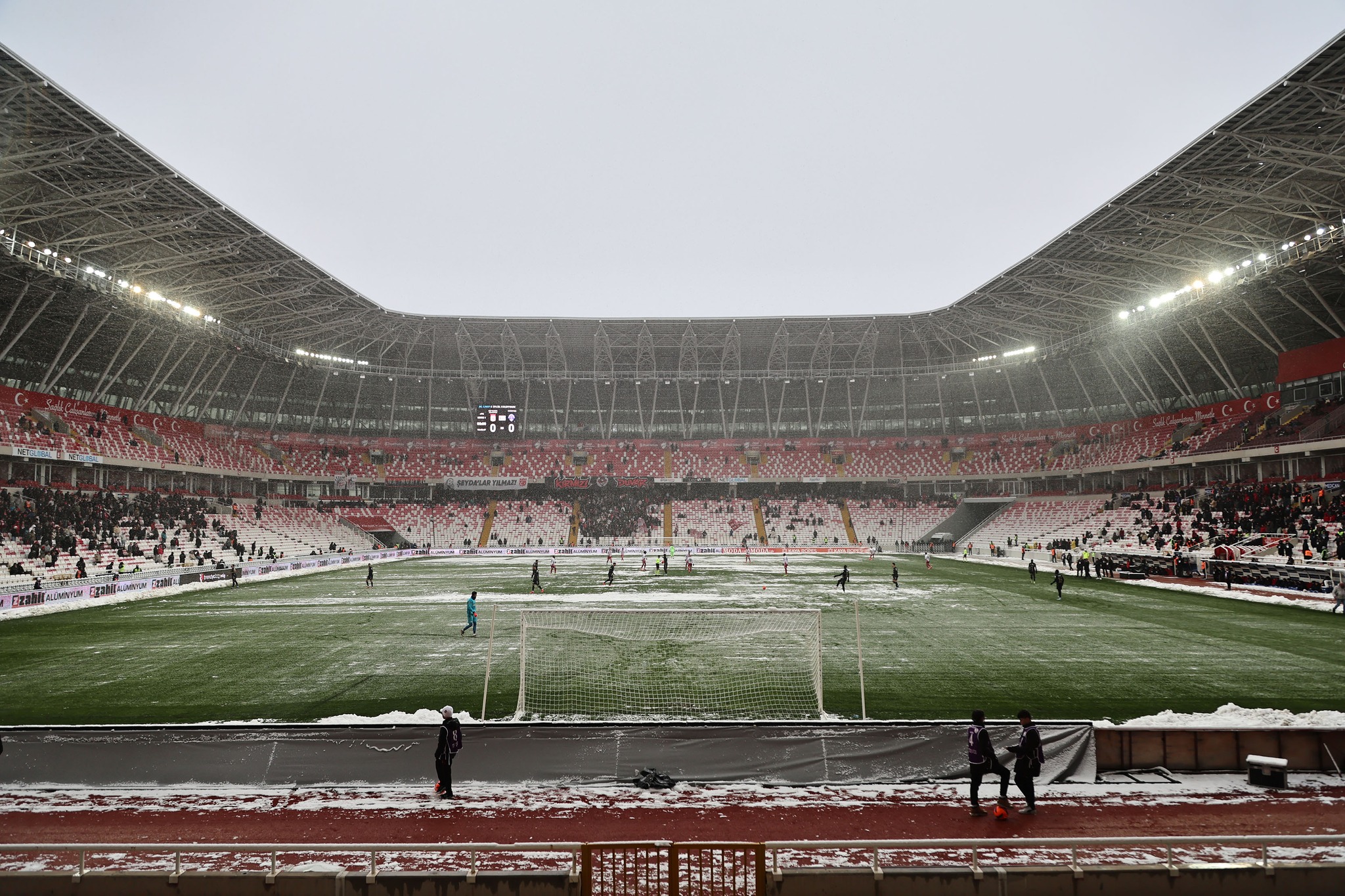 Yoğun kar yağışı aştında oynanan Sivasspor-Kasımpaşa arasında ilk yarıda yenişen olmadı. Futbolcuların rakipten çok hava şartlarıyla mücadele etmesi dikkatlerden kaçmazken, Sivasspor seyircisi ne yazık ki yine azdı.