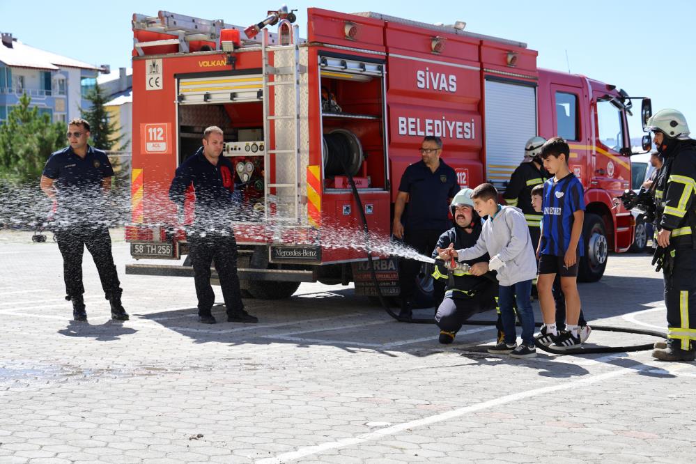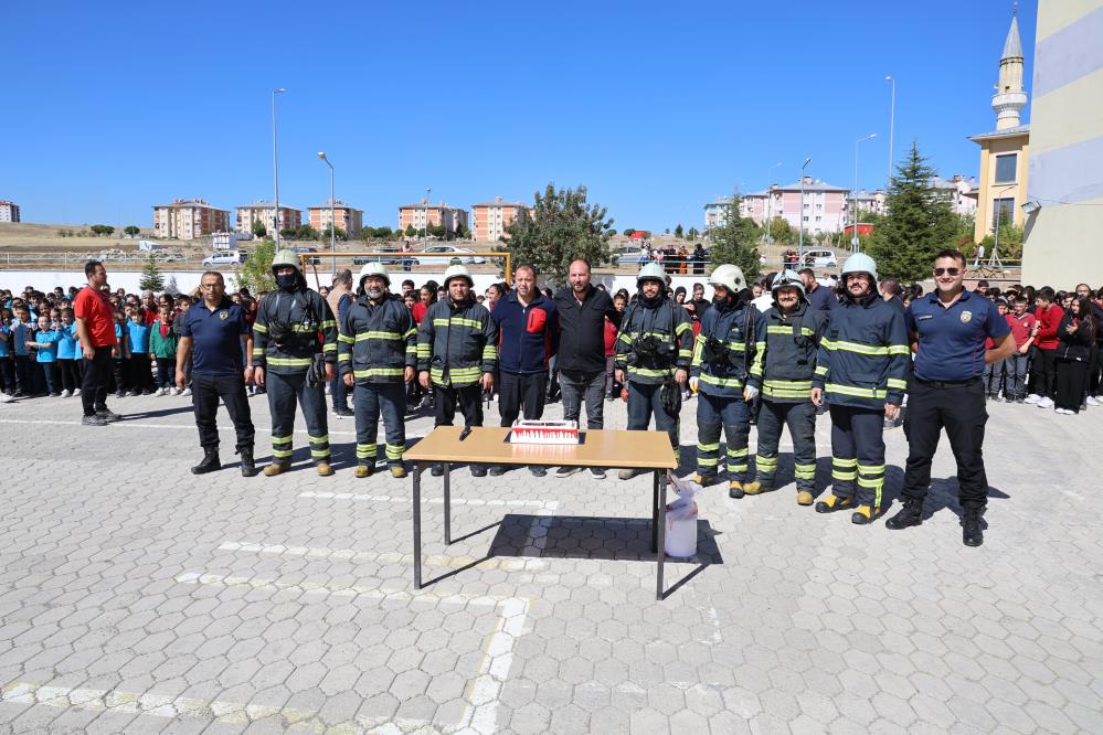 Sivas'ta Ahmet Turan Gazi Mahallesi Muhtarı Hüseyin Aydın, mahallesindeki TOKİ Ahmet Yesevi İlk ve Ortaokulu öğrencileriyle birlikte İtfaiye Haftası nedeniyle itfaiye erlerine sürpriz hazırladı. 112 Acil Çağrı Merkezini arayarak okulun ikinci katında yangın çıktığı ihbarında bulunan Hüseyin Aydın, öğrencilerin üçüncü katta mahsur kaldığını belirtti. İhbarı alarak harekete geçen itfaiye ekipleri okul bahçesinde öğrenciler tarafından alkışlarla karşılandı. Yangın ihbarının sürpriz olduğunu anlayan itfaiye personeli, öğrencilerle birlikte kendileri için hazırlanan pastayı kesti.