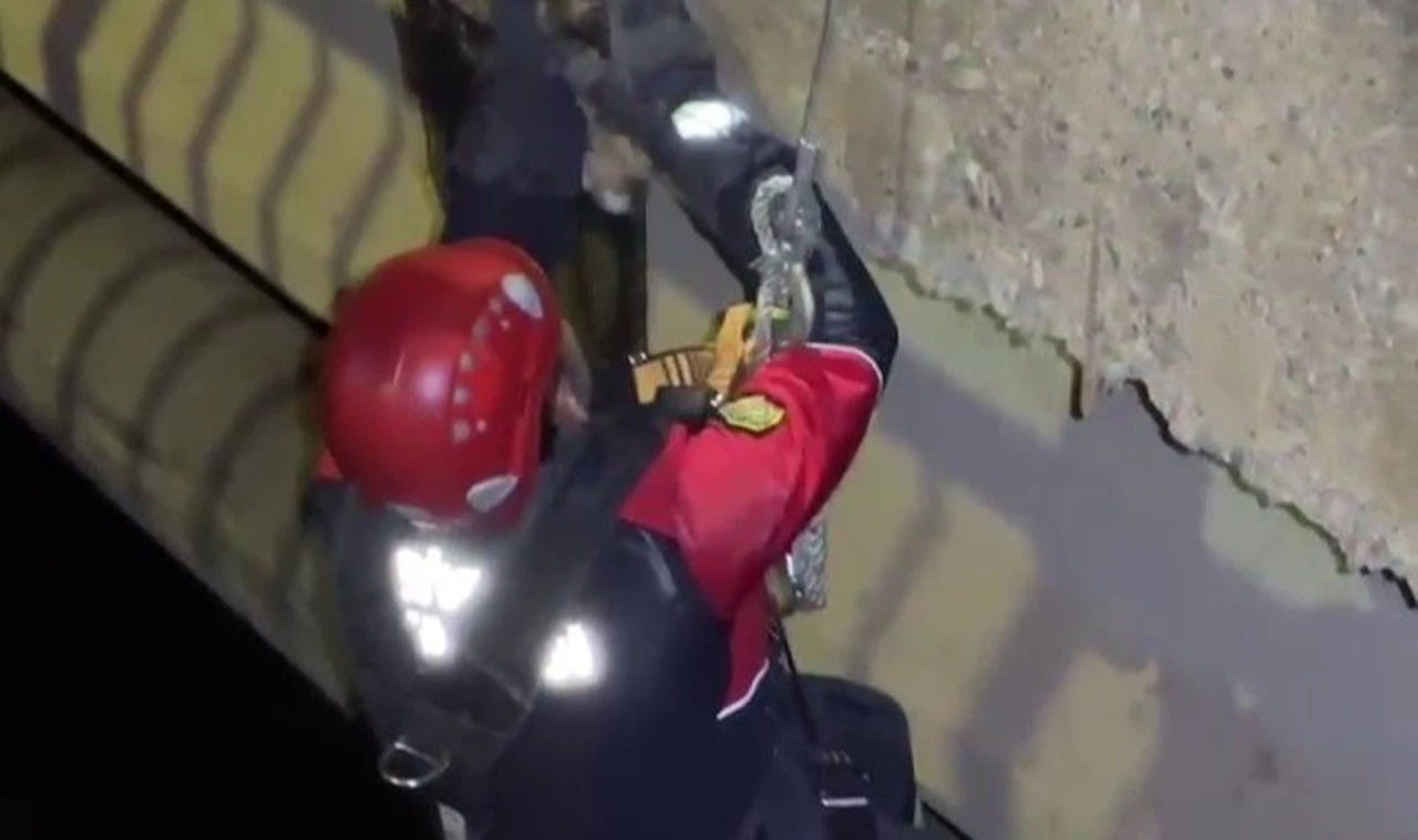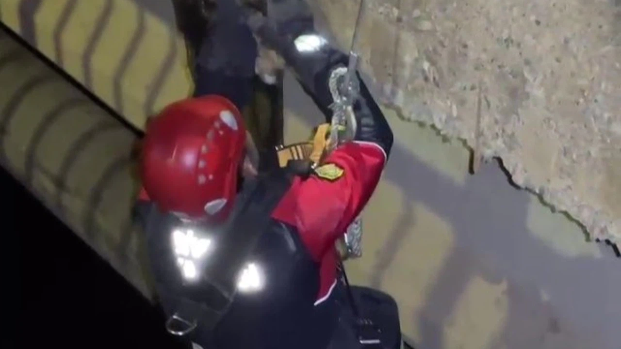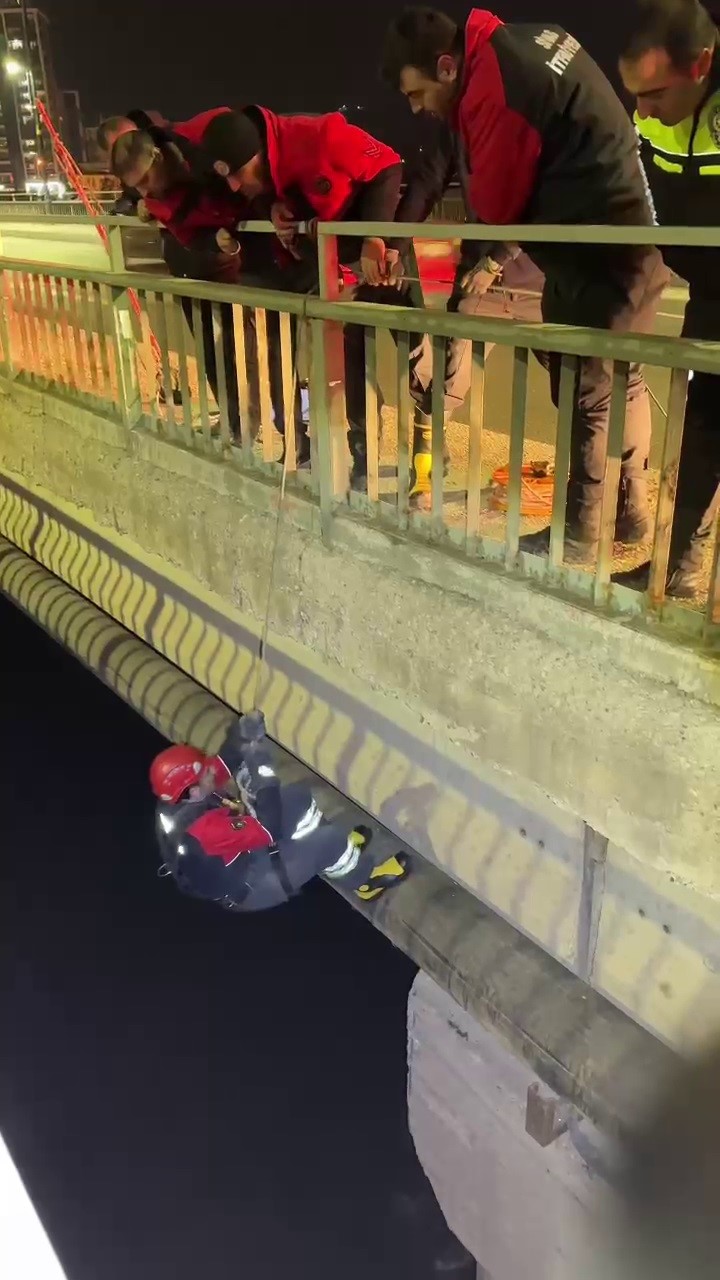 Sivas'ta Kızılırmak üzerindeki bir köprünün ayağında mahsur kalan kedi, itfaiye ekiplerinin başarılı çalışmasıyla kurtarıldı.