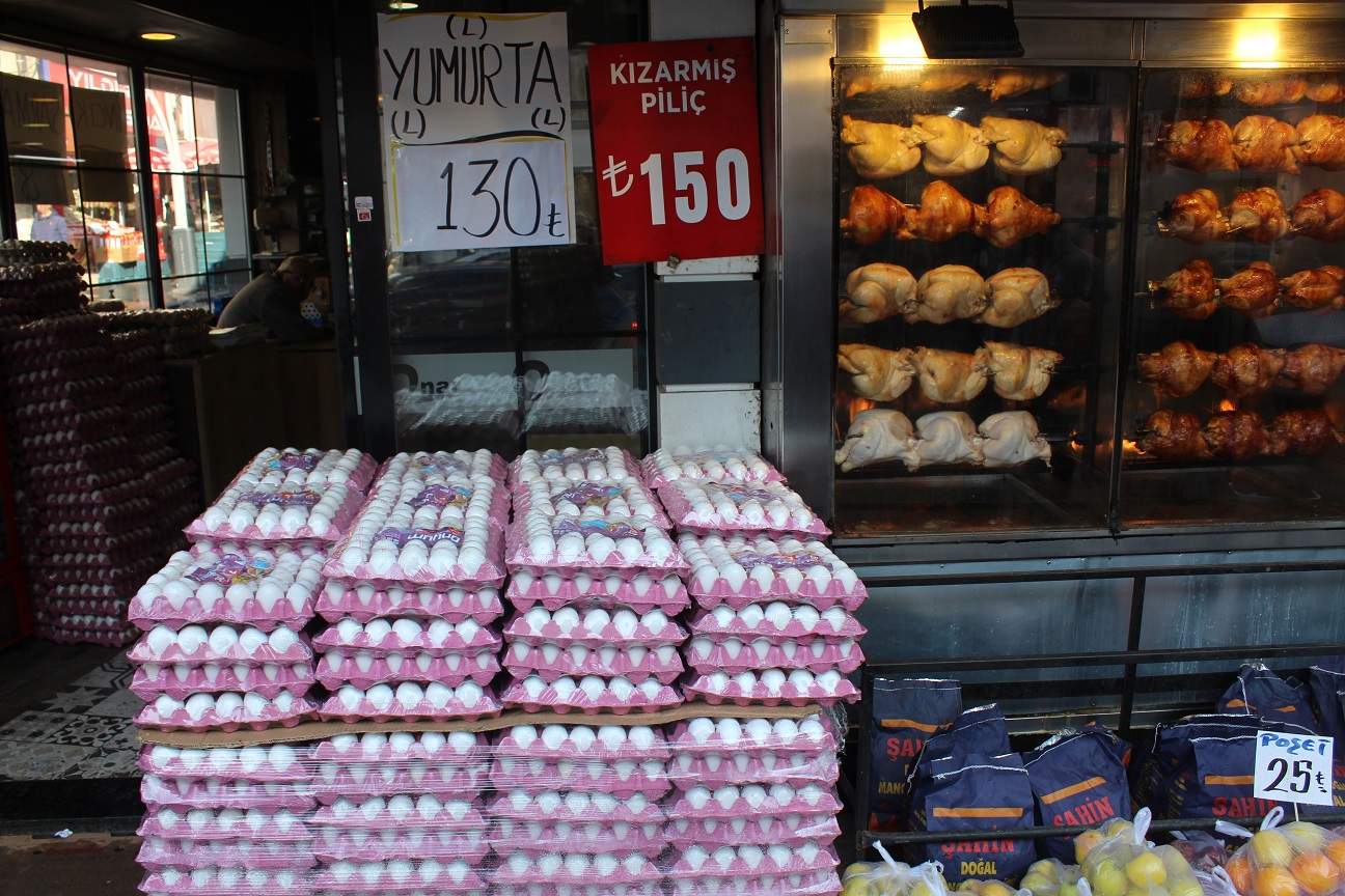 Kızarmış bütün tavuk 150 TL'den satılırken, bir diğer protein kaynağı olan yumurtanın bir koliside 130 TL'den satışta.