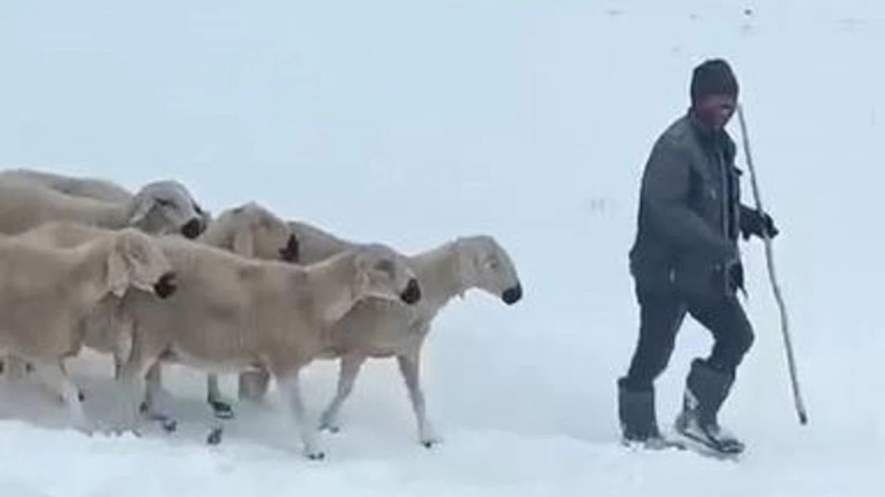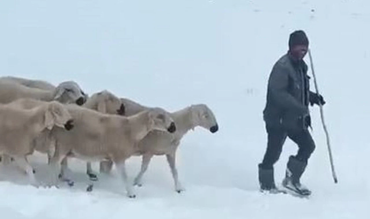 Sivas"ta önceki gün etkisini göstere kar ve fırtına nedeniyle arazide mahsur kalan bin koyun ve 4 çobana ulaşıldı. Çoban ve hayvanların kurtarılma anı cep telefonu kamerasına yansıdı.