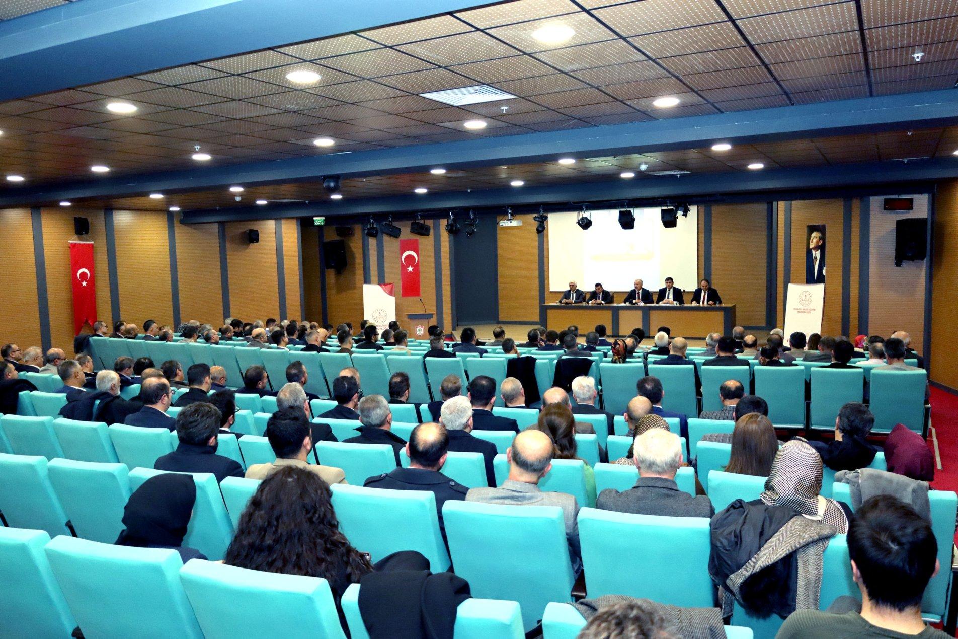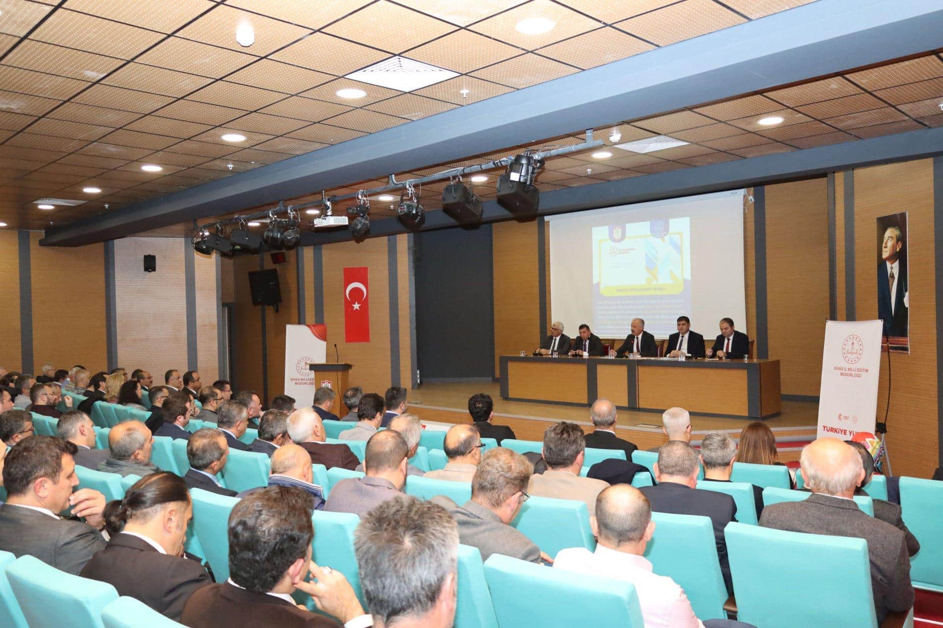 Saygı duruşu ve İstiklal Marşı'nın okunması ile başlayan programda konuşan Millî Eğitim Müdürü Necati Yener, Sivas'ın eğitimdeki başarısını her geçen yıl daha yukarı taşımak için birçok proje ve çalışma yürütüldüğünü vurguladı. Bu çalışmaların sahadaki uygulayıcılarının öğretmen ve okul idarecileri olduğunu belirten Yener; "Bu nedenle sizlerle sık sık bir araya geliyor, eğitim alanındaki çalışmalarımızı başarıya ulaştıracak hususlarda görüş alışverişinde bulunuyoruz. Bu yıl ki birinci gündemimiz hepimizin üzerinde titizlikle durduğu Türkiye Yüzyıl Maarif Modeli... Millî ve manevi değerlerine bağlı, bilgili, kültürlü, donanımlı, medeniyet kurucusu bilge nesiller yetiştirmek mefkûresi ile hayata geçirilen Türkiye Yüzyılı Maarif Modeli Öğretim Programları bu yıl; okul öncesi, ilkokul 1, ortaokul 5, ortaöğretim hazırlık ve 9'uncu sınıflarda uygulanıyor. Öğretim programlarının etkin ve eksiksiz bir şekilde uygulanması çok önemli. Bu alandaki tüm çalışmaları bizzat sahada gözlemliyor, sık sık gerçekleştirdiğimiz okul ziyaretlerinde tüm öğretmenlerimizle de süreci istişare ediyoruz." dedi.