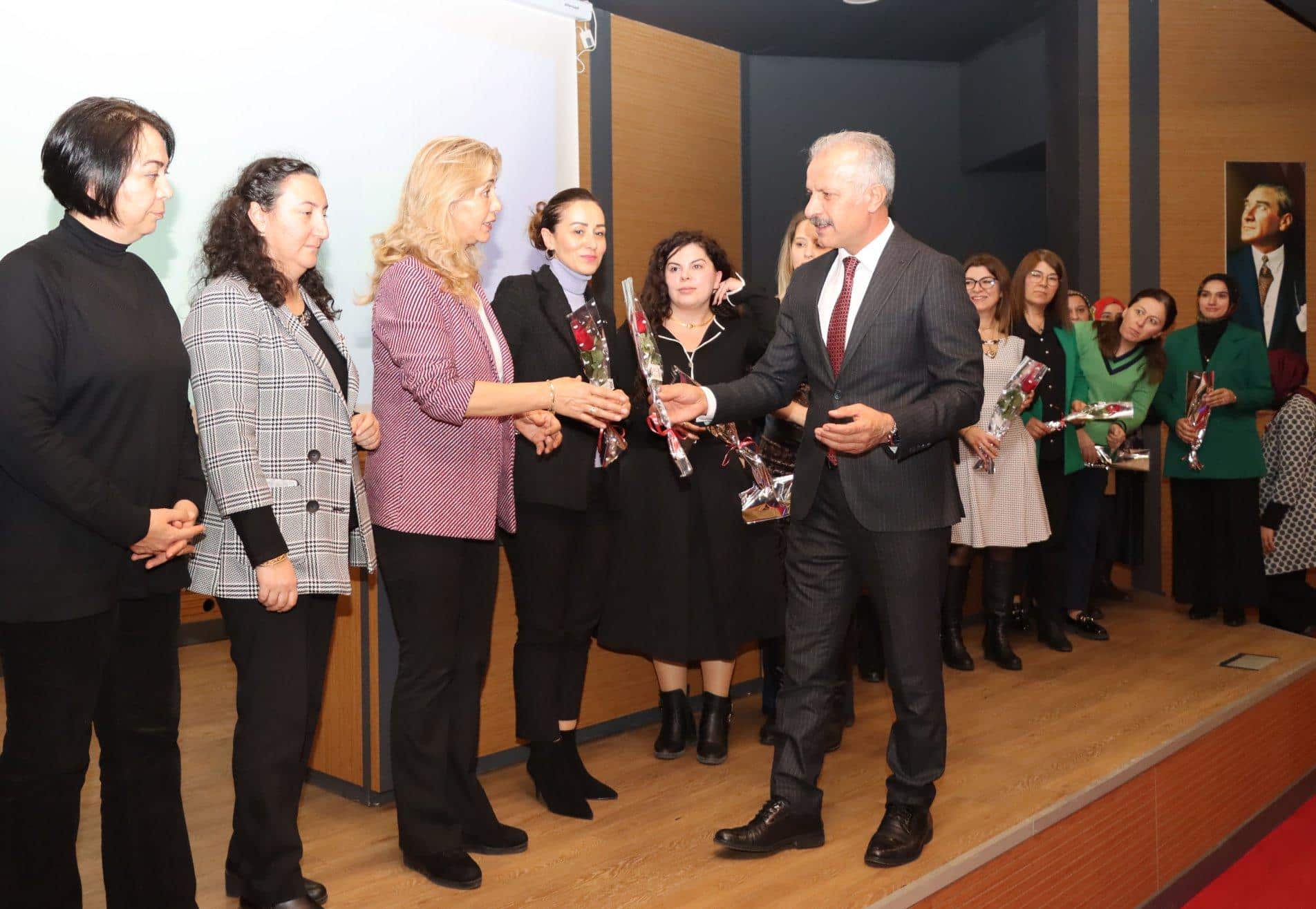 Birim amirlerimizin sorumluluk alanlarındaki konularla ilgili bilgilendirmelerde bulunduğu toplantıda, okul/kurum müdürleri de görüş, öneri ve taleplerini dile getirdi. Yener, toplantı sonrasında okul/kurum idarecilerinin 24 Kasım Öğretmenler Günü'nü tebrik ederek çiçek takdiminde bulundu.