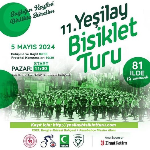 Yeşilay'ın 2011 yılından beri düzenlediği ve Türkiye'nin en büyük bisiklet organizasyonlarından biri olan Geleneksel Yeşilay Bisiklet Turu'nun 11'incisi, 5 Mayıs Pazar günü 'Sağlıklı Yaşamın Keyfini Birlikte Sürelim' sloganıyla gerçekleştirilecek.