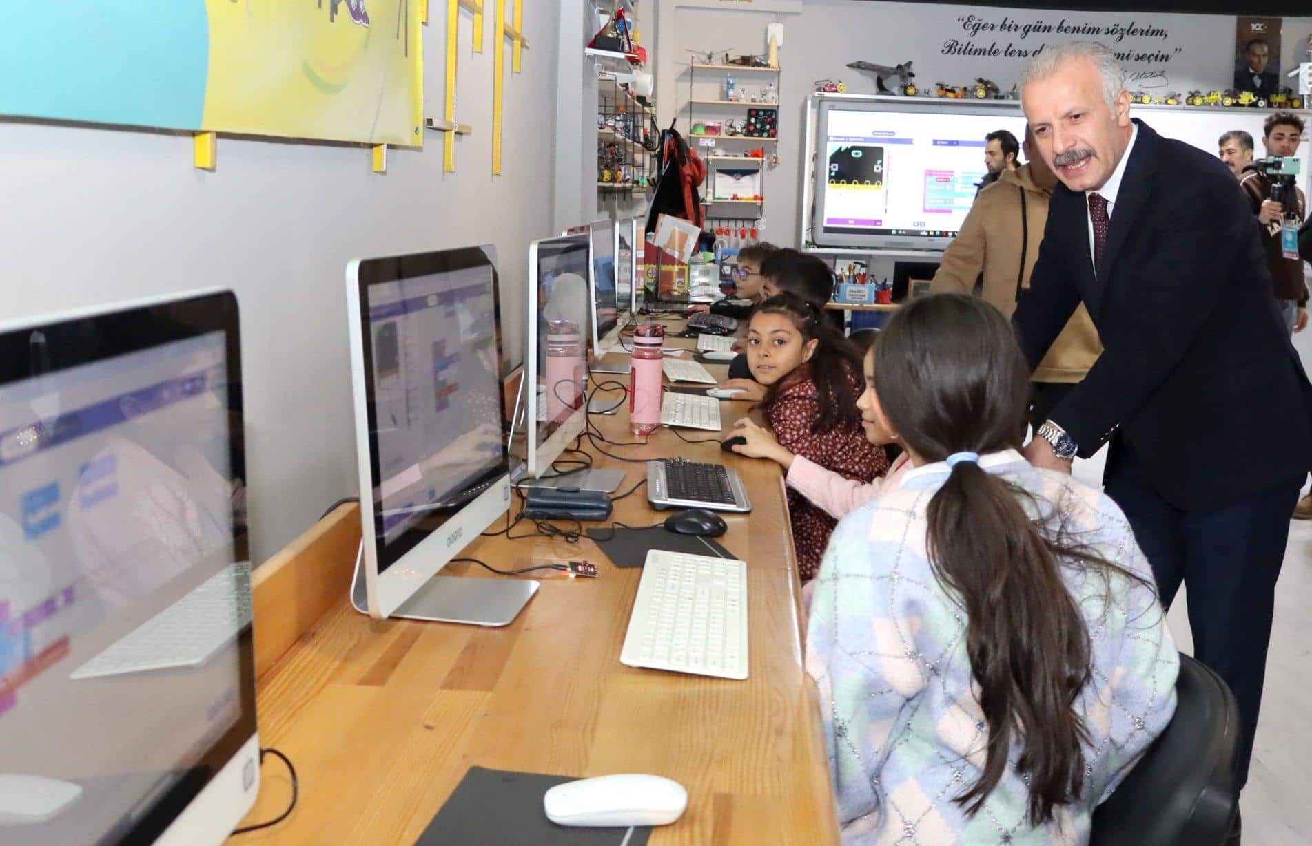 Millî Eğitim Müdürü Necati Yener, Yavuz Selim İlkokulunu ziyaret ederek robotik kodlama atölyesinde kodlama eğitimi alan öğrencilerle bir araya geldi.