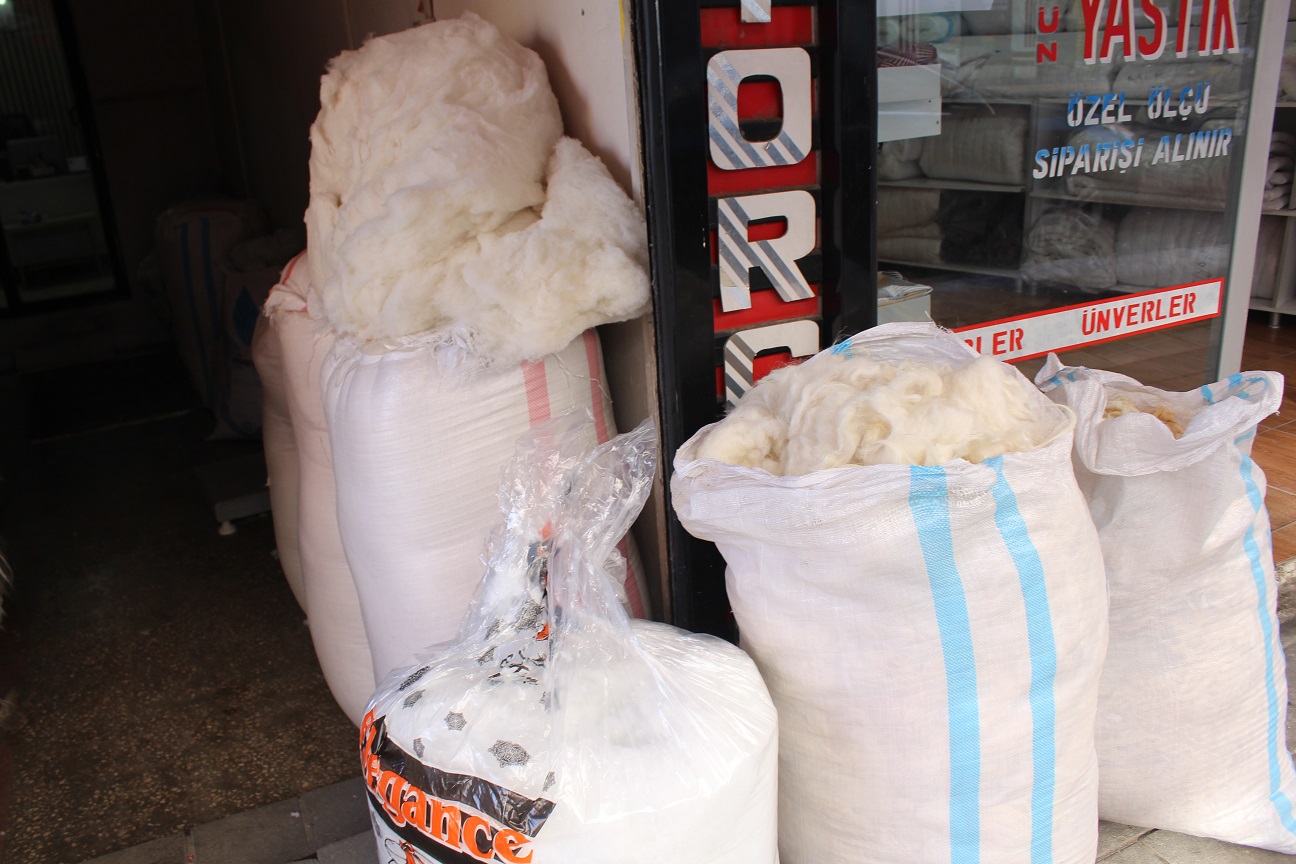 Elyaf ürünlerin olduğunu, bu ürünlerle yapılan yatak ve yorganların sıcak tutmadığını, hem de sağlıksız olduğunu belirten Şinasi Toprak, "Sağlık ve sıcaklık isteyenler yün yorganlara, yastıklara kendini verdi" dedi.