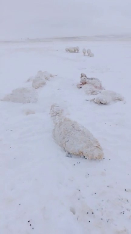 Koyun ve keçilerin bir kısmı soğuktan donarak telef olurken, sürü sahibi soğuktan donmak üzere olan koyunlardan bazılarını telef olmadan önce kesti. Arkadaşının kalan sağ koyunlarının telef olmaması için yardım isteyen vatandaş, sosyal medyada açtığı canlı yayında "Allah rızası için herkes yardıma gelsin.