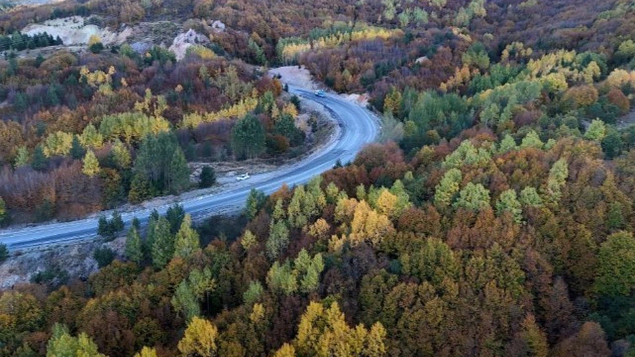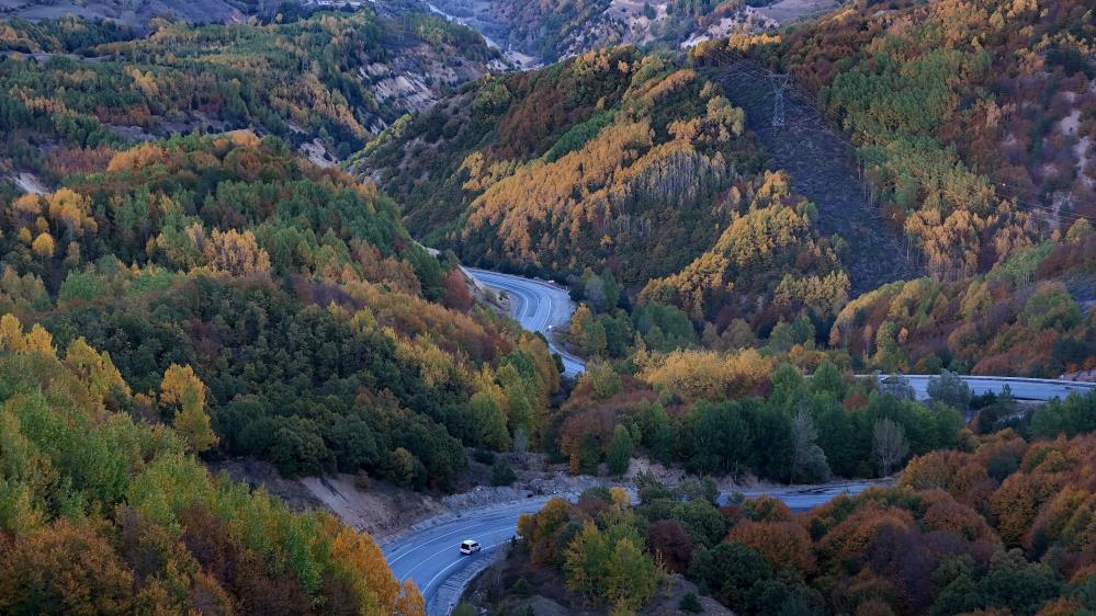 Sarı, kırmızı ve yeşil renklerinin birçok tonunun birleştiği geçitteki ormanlık alan yağlı boya tablolarını andırıyor. Masalsı manzarayı gören vatandaşlar, eşsiz doğa manzarasını fotoğraflıyor. Kartpostallık görüntülerin oluştuğu geçidin güzelliği, dron ile görüntülendi.