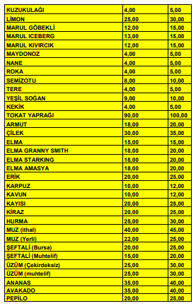 Hal Müdürlüğü tarafından her hafta yayımlanan liste fiyatlarında asgari ve azami fiyatlar ayrı ayrı listelenirken, Sivas esnafları tarafından yapılan satışlara baktığınız da arada farkları görebiliyoruz. Birçok esnaf fiyatlara kar marjını koyarak asgari fiyatla satışını yaparken, birçok esnaflarda fiyatların neredeyse misliyle etiketlendiği görülüyor.