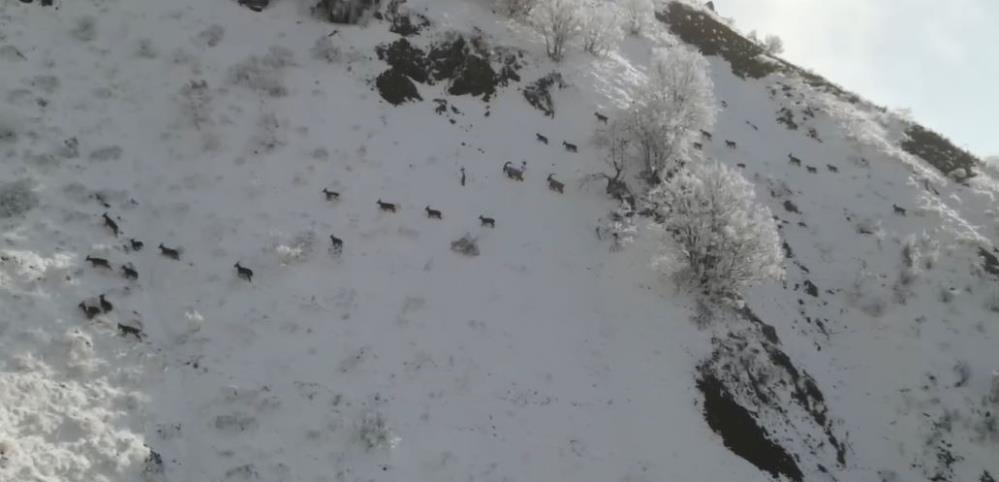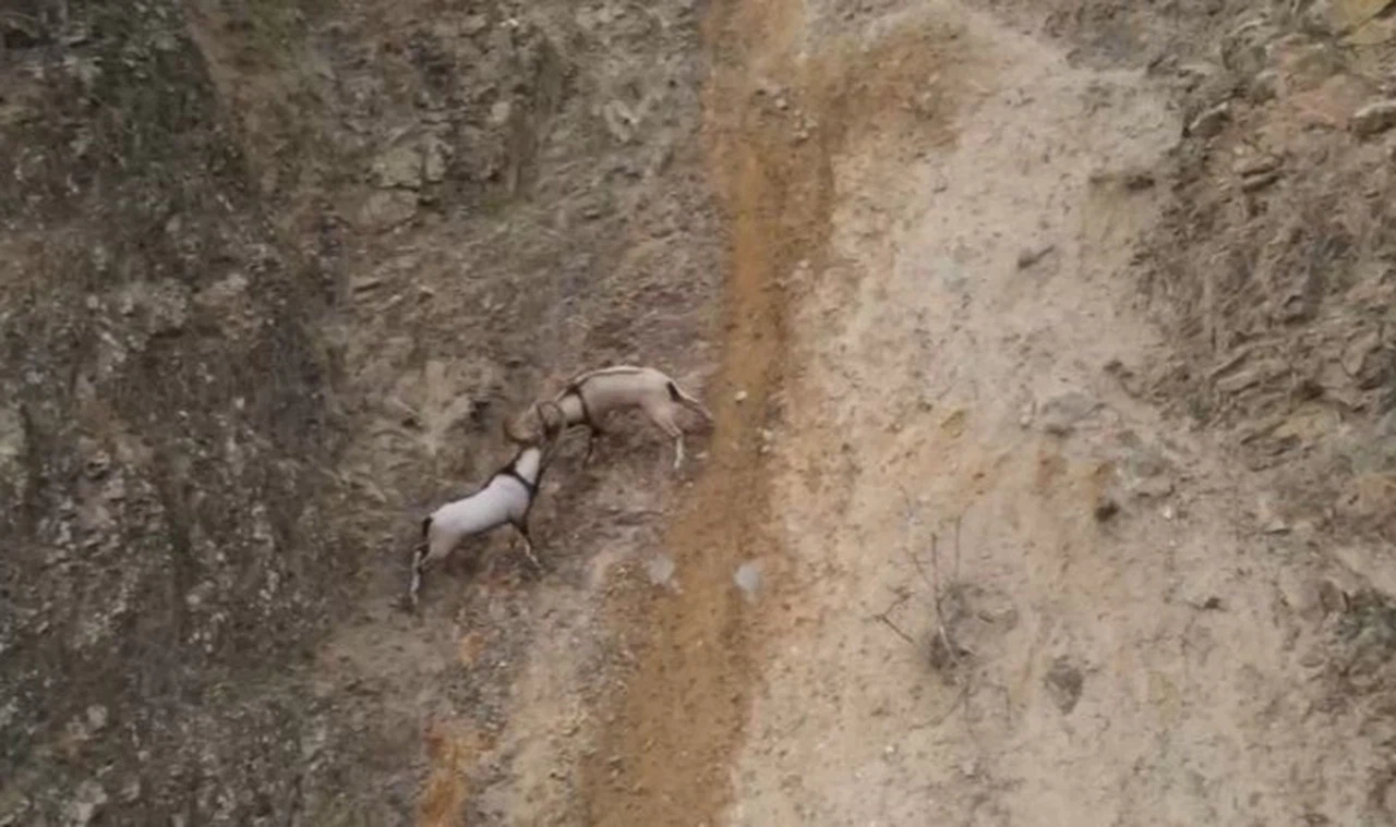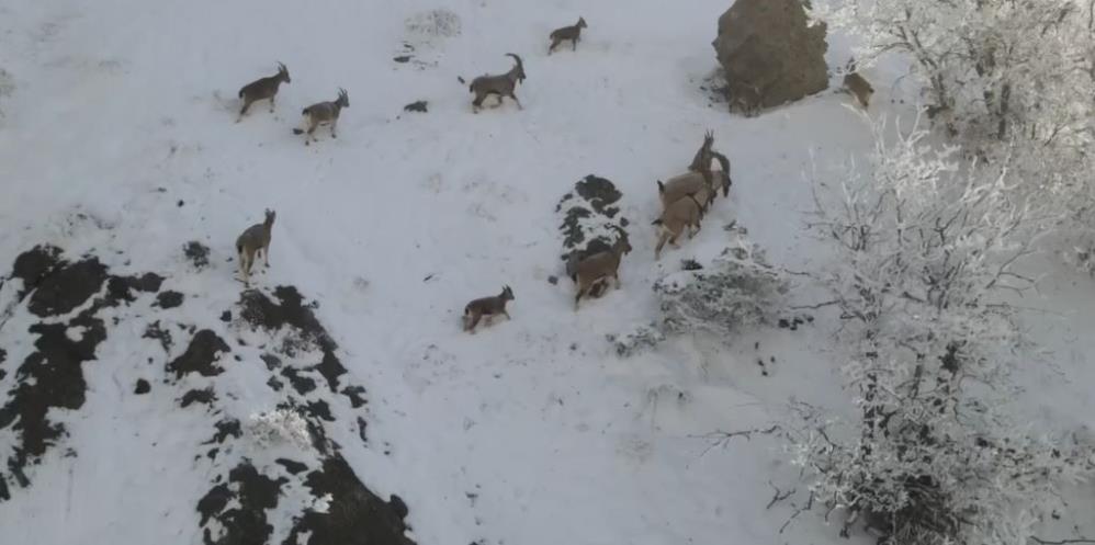 Sarp kayalar ve dik yamaçlarda gezinen ve beslenmeye çalışan keçilerin kavgası ise dron ile havadan görüntülendi. Görüntüleri sosyal medya hesabında paylaşan Doğa Koruma ve Milli Parklar Genel Müdürü Kadir Çokçetin, yaban keçisi popülasyonunun arttığını ifade ederek, “Ekiplerimizce yaban hayatının korunması ve devamı için tüm ülke sathında ve her türlü coğrafyada çalışmalarımızı sürdürüyoruz” dedi.