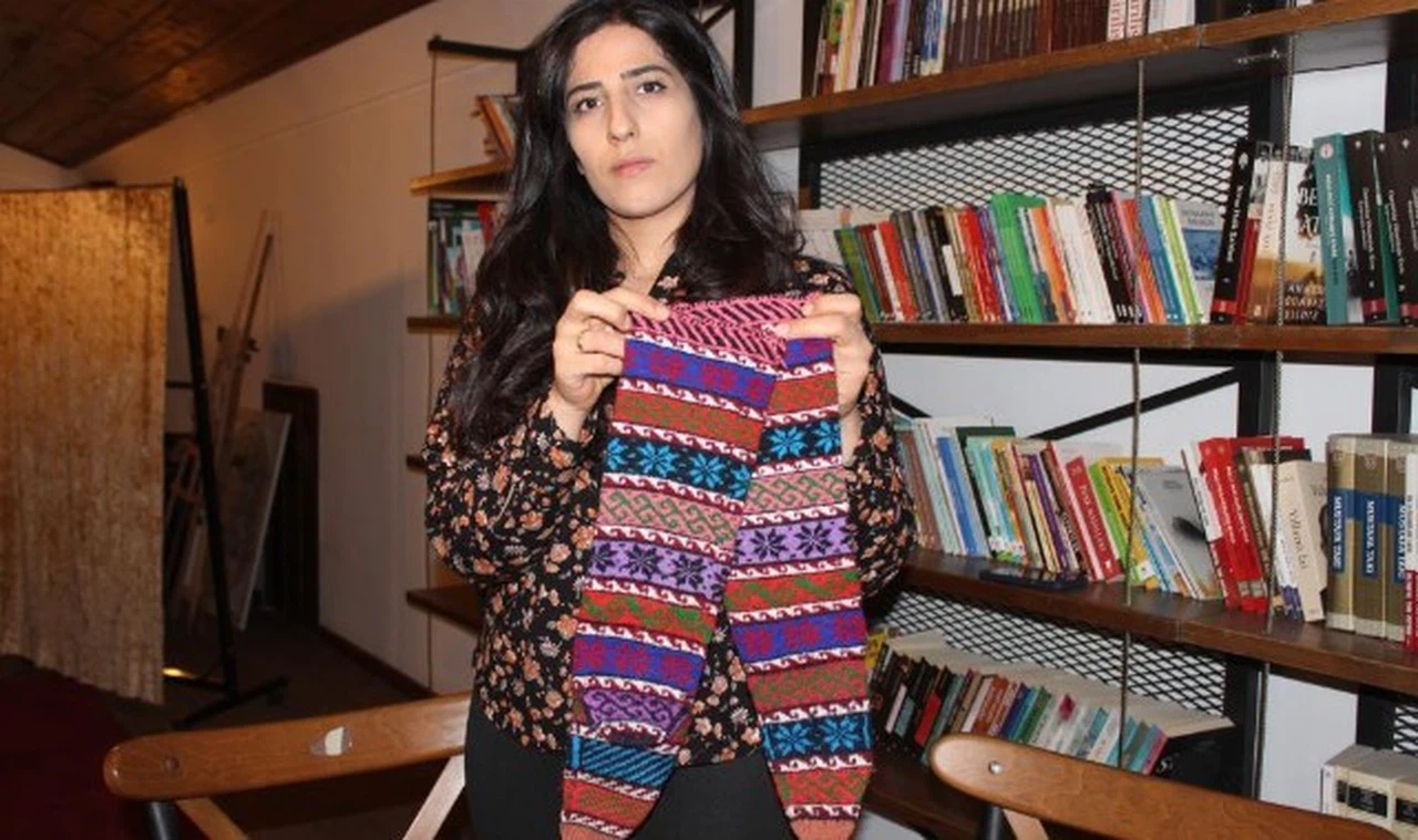Yün çorapları modern tasarımlarla harmanladıklarını söyleyen Akgül, “Dokumacıyım. Halı, kilim ve çorap dokuyorum. 5 şiş çorap örüyorum. 4 şiş dolu, bir şiş boş şekilde yapıyorum. Bir çift çorabı yaklaşık bir haftada dokuyorum. Arkadaşlarımız köylerde alan araştırması yapıyorlar. Ninelerimizin öncelerden dokudukları çorapları ve sandıklarında bulunan parçalardan fotoğrafları çekip getiriyorlar.