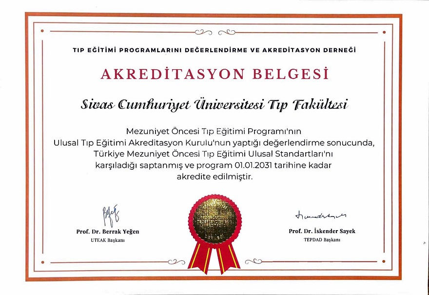 Haziran 2025’te TEPDAD tarafından açıklanan sonuçlara göre, Sivas Cumhuriyet Üniversitesi Tıp Fakültesi’nin Türkçe Tıp Eğitimi Programı, Mezuniyet Öncesi Tıp Eğitimi Ulusal Standartlarını karşıladı. Bu kapsamda fakülte, 01.01.2031 tarihine kadar geçerli olmak üzere tam 6 yıllık akreditasyon hakkı kazandı. Bu, hem kurumsal güvenilirliğin hem de eğitim kalitesinin güçlü bir göstergesi olarak kabul ediliyor.