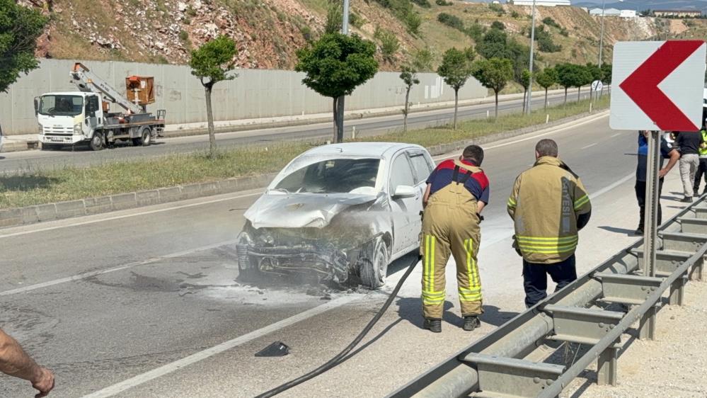Bu sırada, hurdaya dönen otomobilin motor kısmından dumanların yükselmesi kısa süreli paniğe neden oldu. Olası bir yangın tehlikesine karşı itfaiye ekipleri, aracın motor kısmını tazyikli suyla soğutarak güvenlik önlemi aldı.