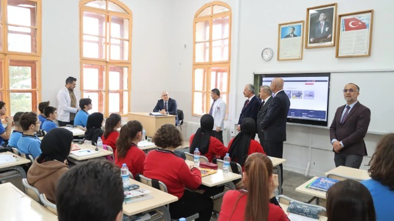 1916 yılında inşa edilen ve bugüne kadar farklı isimlerle eğitim alanında hizmet veren tarihi okul binasında incelemelerde bulunan Vali Şimşek, daha sonra sınıfları ziyaret ederek öğrencilerle sohbet etti.
