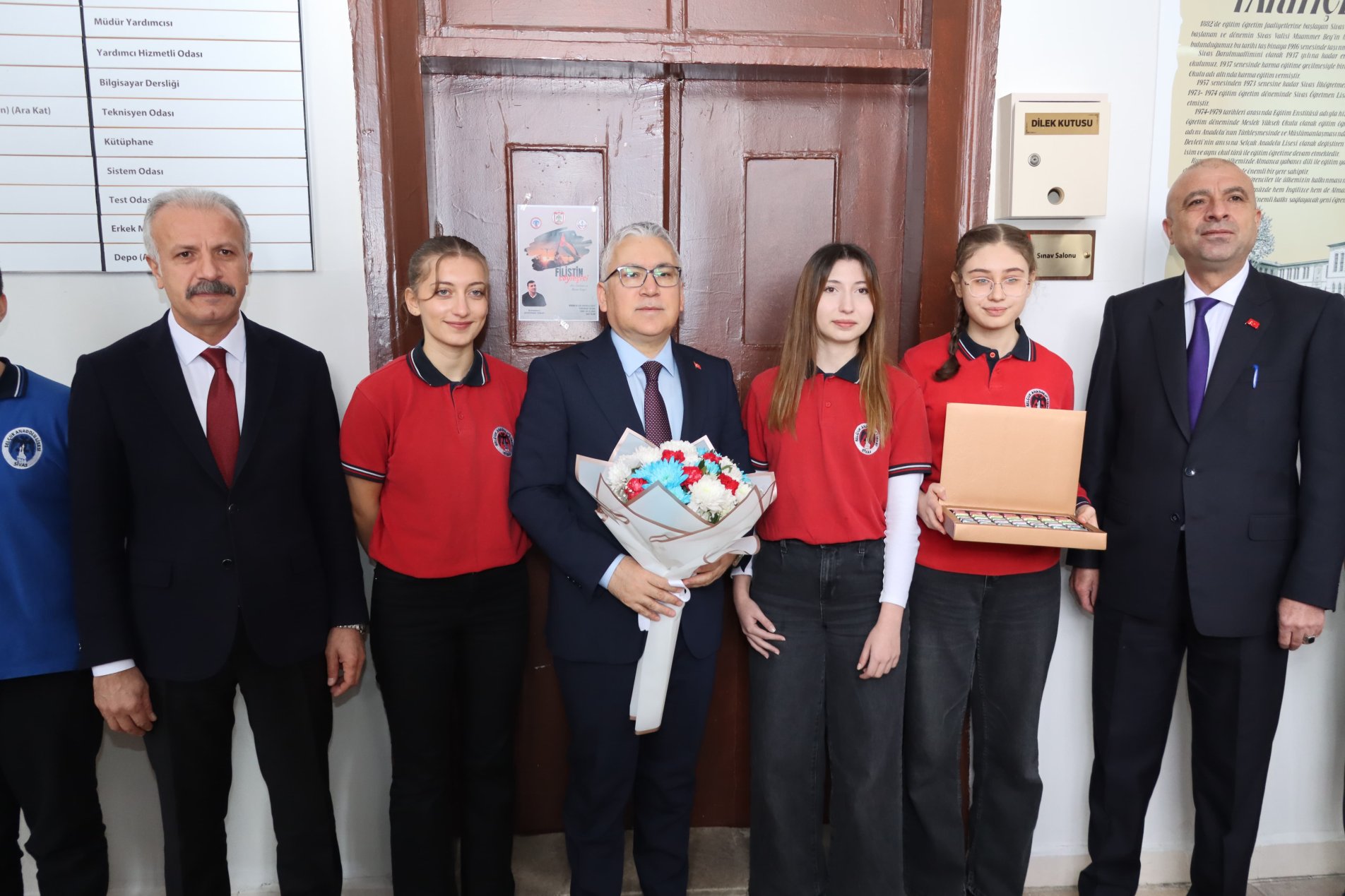 Vali Yılmaz Şimşek, İl Emniyet Müdürü Burhan Akçay ve Millî Eğitim Müdürü Necati Yener ile birlikte Selçuk Anadolu Lisesini ziyaret etti.