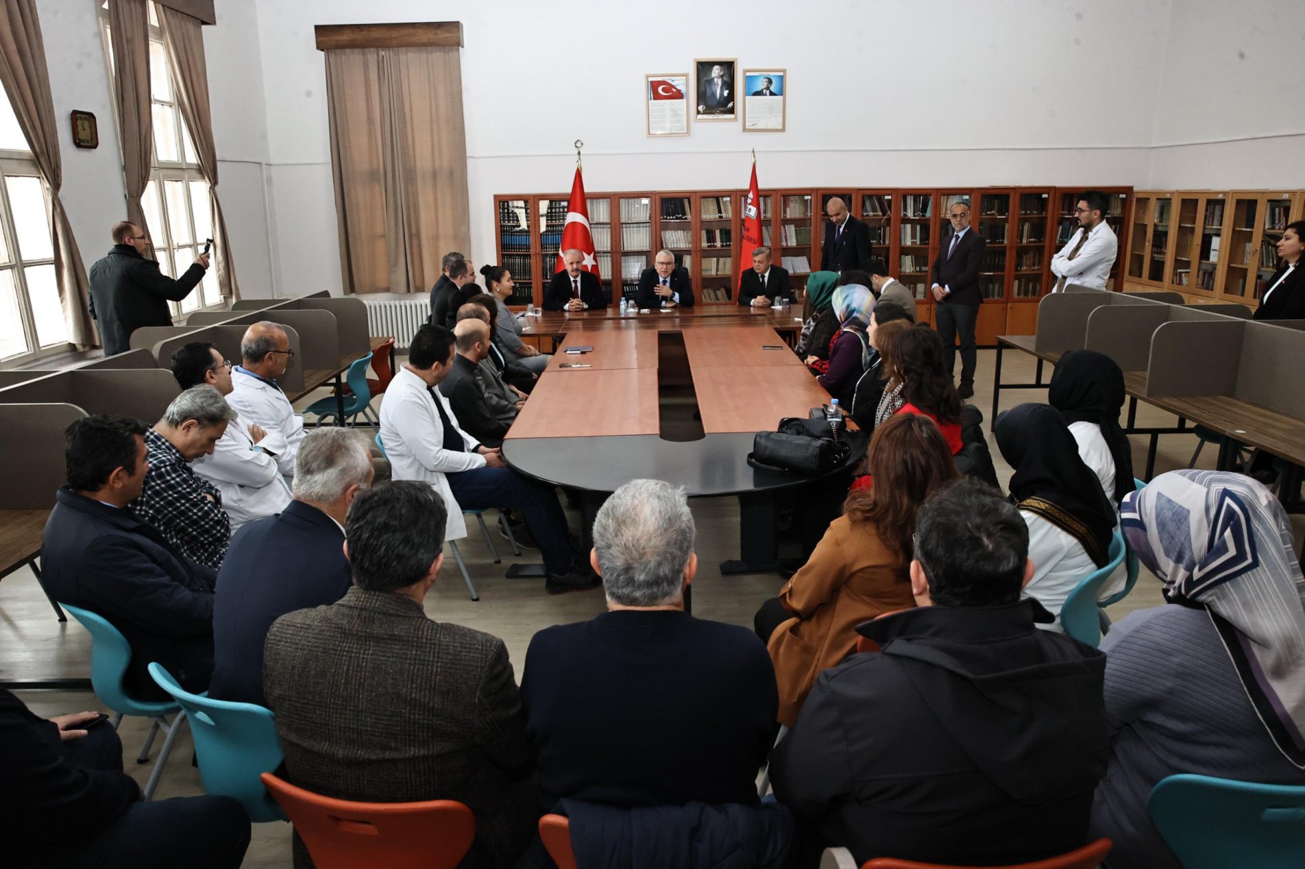 Öğrencilere derslerinde başarılar dileyen Şimşek, sınıf ziyaretlerinin ardından okulda görev yapan öğretmenlerle bir araya geldi. Eğitim alanında yürütülen proje ve çalışmalara yönelik öğretmenlerle görüş alışverişinde bulunan Vali Şimşek, öğretmenlerin talep ve önerilerini dinledi.