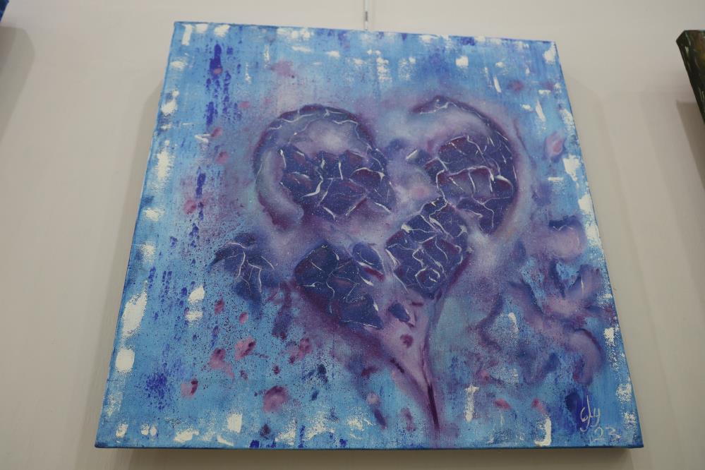 "Görevim esnasında mikroskobik incelemeler yaparken çok değişik, bir o kadar da ilgi çeken renkli görüntüler yakalama şansım oldu," diyen Şimşek, özellikle bir tiroit aspirasyon biyopsisinin mikroskobik görüntüsünden çok etkilendiğini ve bu görüntünün kendisi için özel bir anlam taşıdığını ifade ediyor. Bu ilhamla, akrilik boyalarla tuvale aktardığı hücresel desenler, "Kırık Kalp" tablosunda somutlaştı.