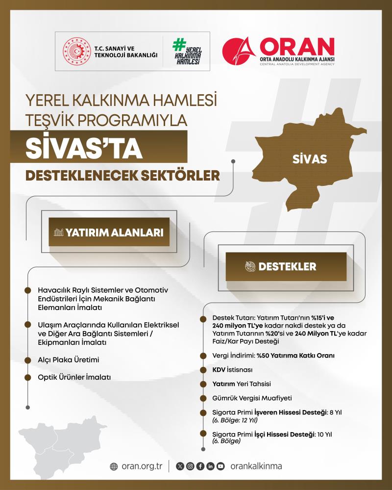 Sanayi ve Teknoloji Bakanlığı tarafından yürürlüğe konan Yerel Kalkınma Hamlesi Programı; Türkiye genelindeki 81 il için özel olarak belirlenen yatırım önceliklerini duyurdu. Programın usul ve esaslarını belirleyen tebliğ, 9 Temmuz 2025 tarihli ve 32566 sayılı Resmî Gazete’de yayımlandı. Program, iller arası gelişmişlik farklarını azaltmak, yerel potansiyelleri ekonomiye kazandırmak ve yüksek katma değerli üretimi teşvik etmek amacıyla hayata geçirildi. Her il için 4 sektörel başlık altında yatırım öncelikleri belirlendi. Kayseri, Sivas ve Yozgat için bu kapsamda illerin sahip olduğu üretim kabiliyetleri, insan kaynağı, altyapı ve potansiyel yatırım alanları dikkate alınarak belirlenen konular şu şekilde açıklandı;