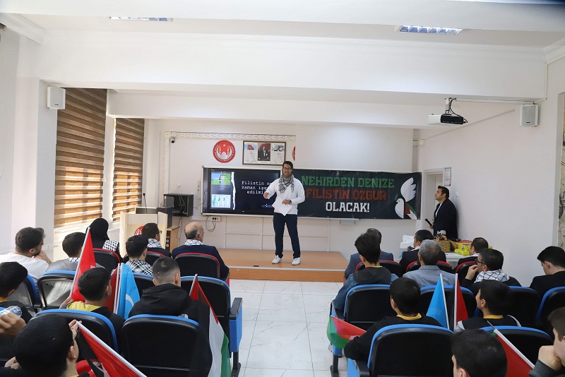 Programa, ildeki çeşitli kamu kurumlarının birim amirleri, okul müdürleri ve çok sayıda öğrenci katıldı. Etkinlikte, Filistinli öğrenciler kendi yaşadıkları olaylardan kesitler aktararak, İsrail’in Filistin topraklarındaki işgali, yaşanan insanlık dışı saldırılar, savaş suçları ve Gazze’deki abluka hakkında lise öğrencilerini bilgilendirdi. Katılımcıların duygusal anlar yaşadığı program, izleyiciler tarafından ilgiyle takip edildi.