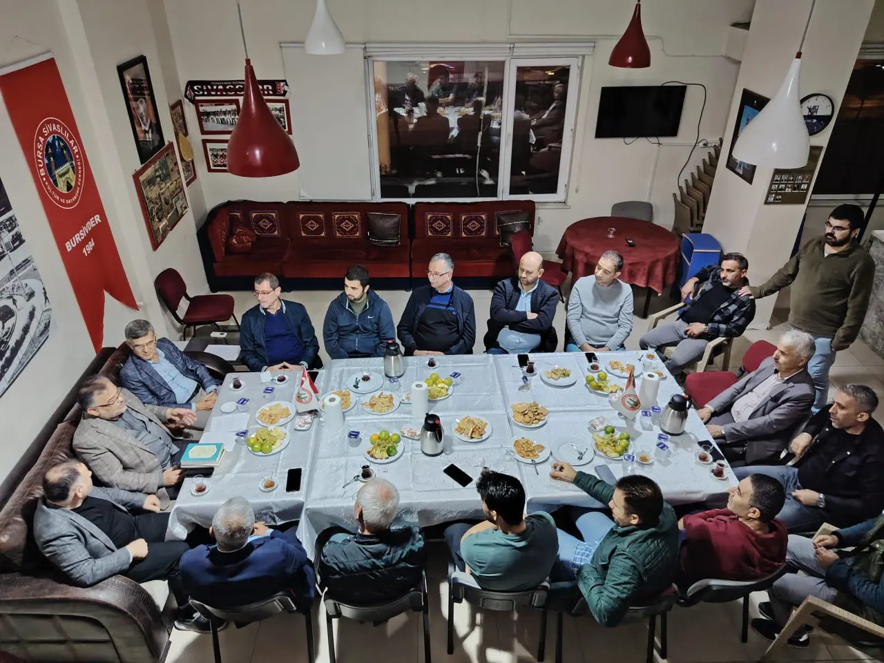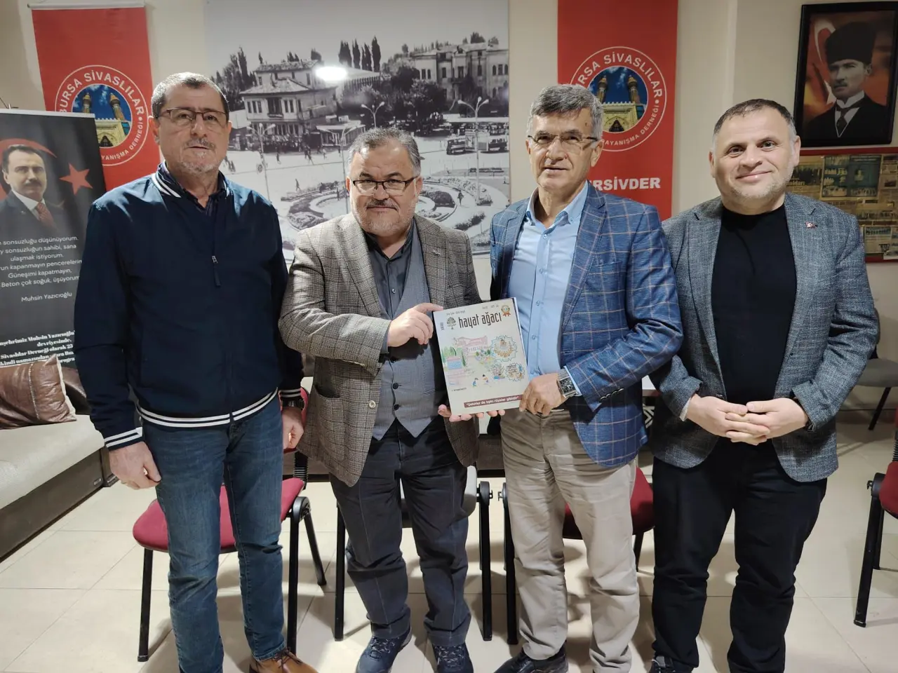 Sivasi Sohbetleri programına Sivas Hizmet Vakfı Bursa Şubesi Başkanı Av. Nazmi Akkuş, dernek yönetim kurulu üyeleri ve çok sayıda dernek üyesi katılım gösterdi. Program sonunda Av. Nazmi Akkuş tarafından Prof. Dr. Bilal Kemikli’ye Hayat Ağacı dergisinin son sayısı takdim edildi. Dernek Genel Sekreteri Cahit Korkut ve Yönetim Kurulu Üyesi İsmail Kaya’nın da hediye takdiminde bulunduğu etkinlik, toplu hatıra fotoğrafı çekimiyle sona erdi.