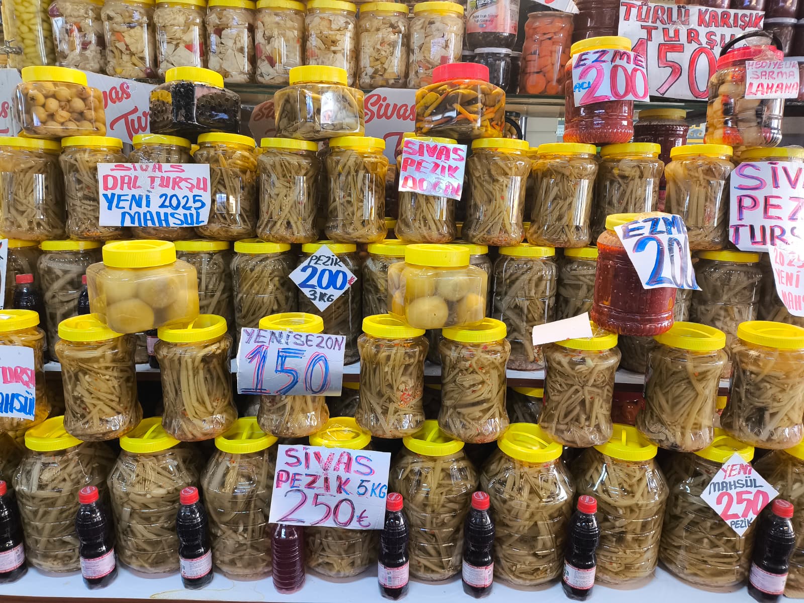 Tezgahlarda en çok aranan ve satılan ürünün hangisi olduğu sorulduğunda ise cevap net: "Sivaslıların en sevdiği turşu türü, Sivas'a özgü olan dal turşusu, yani pezik turşusudur."