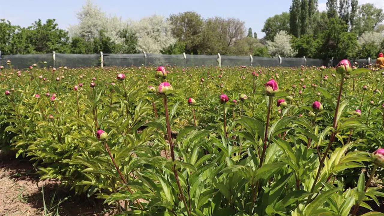 Sivas'ın Gemerek ilçesinde alternatif tarıma yeni bir soluk getiren şakayık çiçeği, bölgenin bozkırlarını renklendiriyor. Tatlıcak Mezrası’nda üretici Nurettin Otyakmaz’a ait tarlada başlayan sezonun ilk hasadı, protokolün katılımıyla gerçekleşti.