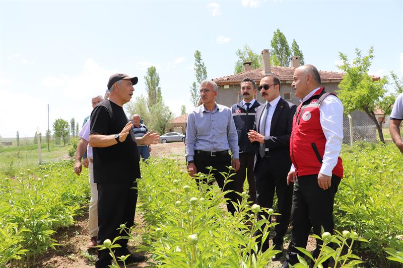 Gemerek Kaymakamı Enes Burak Koca, Gemerek Belediye Başkanı Sezai Çelikten, İl Tarım ve Orman Müdürü Seyit Yıldız, il ve ilçe protokolü ile çok sayıda üretici, dört yıldır devam eden şakayık üretim alanında incelemelerde bulundu.