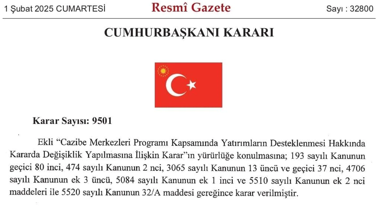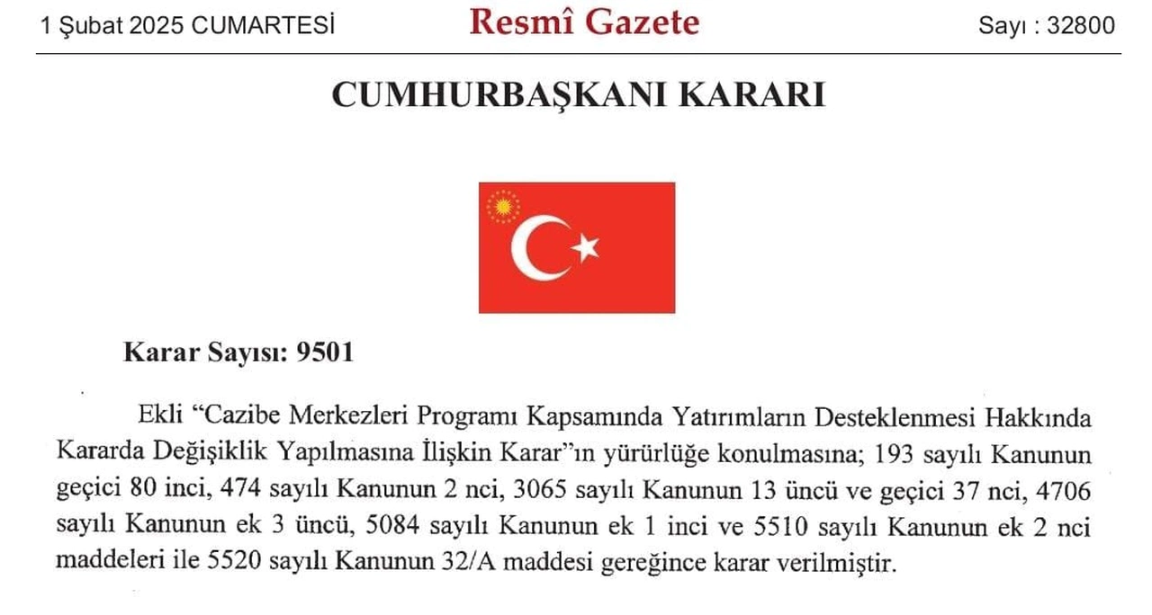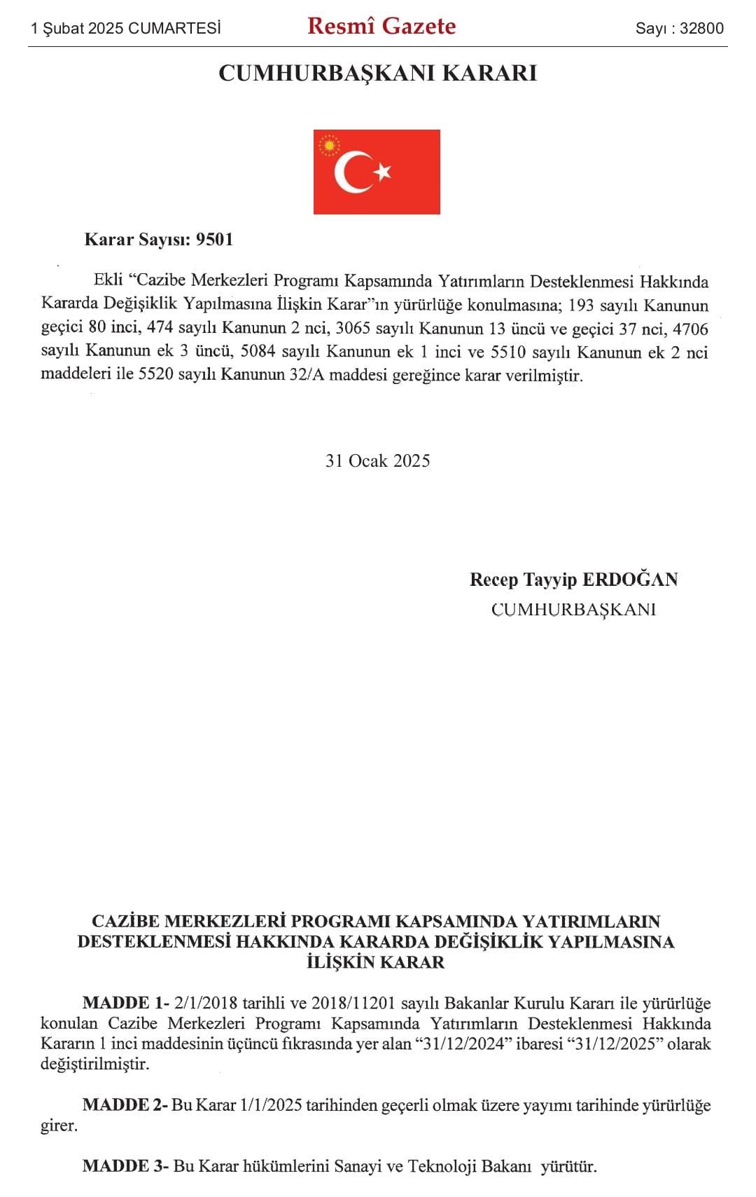 Cumhurbaşkanı Recep Tayyip Erdoğan'ın kararıyla ilimizde üretim ve istihdama yönelik önemli katkılar sunan Cazibe Merkezleri Programı 2025 yılı için uzatıldı.