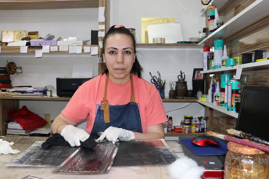 Ahşap oyma ustası Kadriye Tatlısu, 22 yıl önce başladığı ahşap oymacılığını çok sevdiği için atölye kurmaya karar verdiğini söyledi.