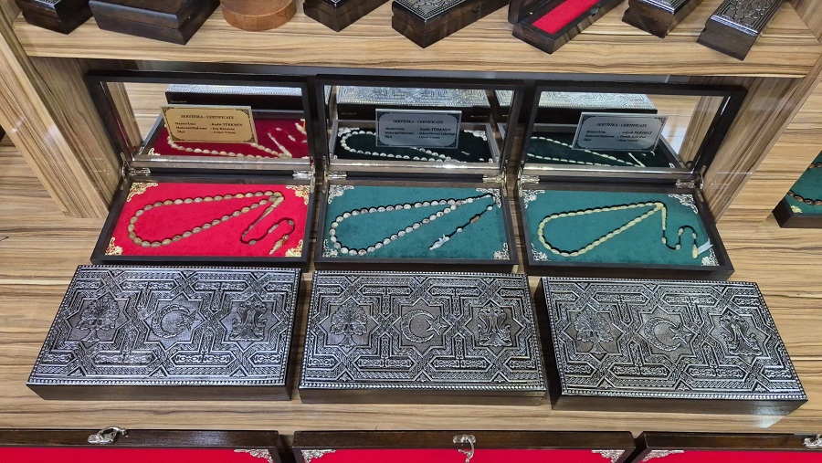 "Biz bunu kutularla başlayıp tablolara geçtik. İsteğe göre ürün çeşidi çoğaldı. Taleplere karşılık vermeye çalışıyoruz. Ürünlerimiz genellikle devlet büyüklerimize gidiyor. Yurt dışından da çok fazla talep oluyor. Yurt dışından da genellikle tespih ustaları için kutular imal ediyoruz. İstekleri doğrultusunda tablolarını yapıyoruz. Bize Katar'dan da özel kutu siparişi geliyor. Dediğim gibi ne isterse özel olarak onun çalışmasını yapıp sunumunu yaparak satışını yapıyoruz. Almanya, Hollanda, ABD gibi birçok ülkeye aracı firmalarla ürünlerimiz gidiyor."