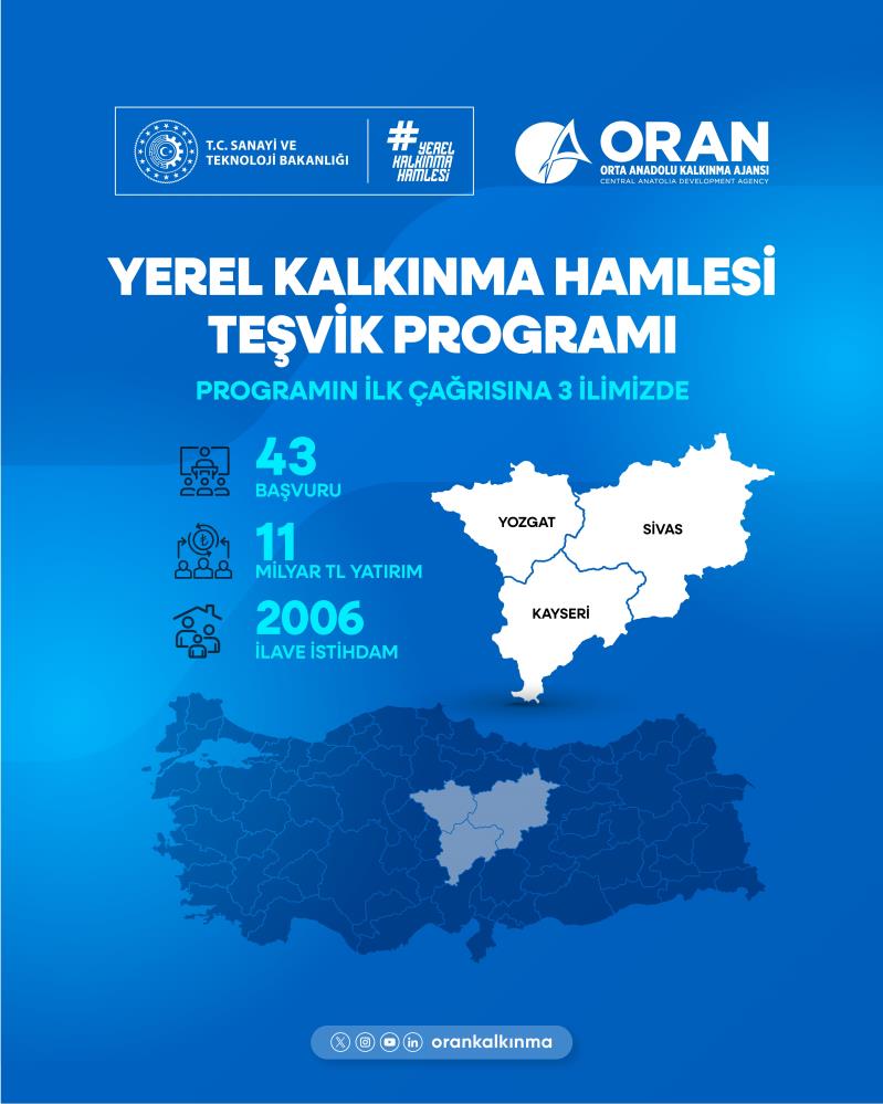 1 Ağustos – 30 Eylül 2025 tarihleri arasında gerçekleştirilen ön başvuru süreci sonunda, TR72 Bölgesi (Kayseri, Sivas, Yozgat) toplamda 43 başvuru ile Türkiye genelinde en fazla başvuru alan üçüncü bölge oldu. 11 milyar TL’lik yatırım hacmi ve 2006 kişilik ilave istihdam beklentisiyle bölge, yerel kalkınma konusunda örnek bir başarıya imza attı. Özellikle Sivas’ın yatırımlara sağladığı yönelim, bölgesel kalkınma politikaları açısından umut verdi.