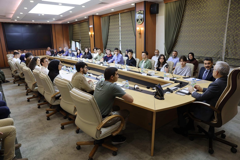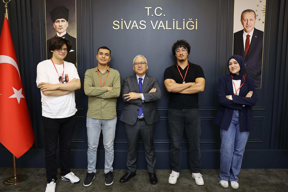 Sivas Valisi Yılmaz Şimşek, Yükseköğretim Kurumları Sınavı (YKS) 2025'te Türkiye genelinde ilk 1000'e girerek büyük bir başarıya imza atan öğrencileri makamında kabul etti.