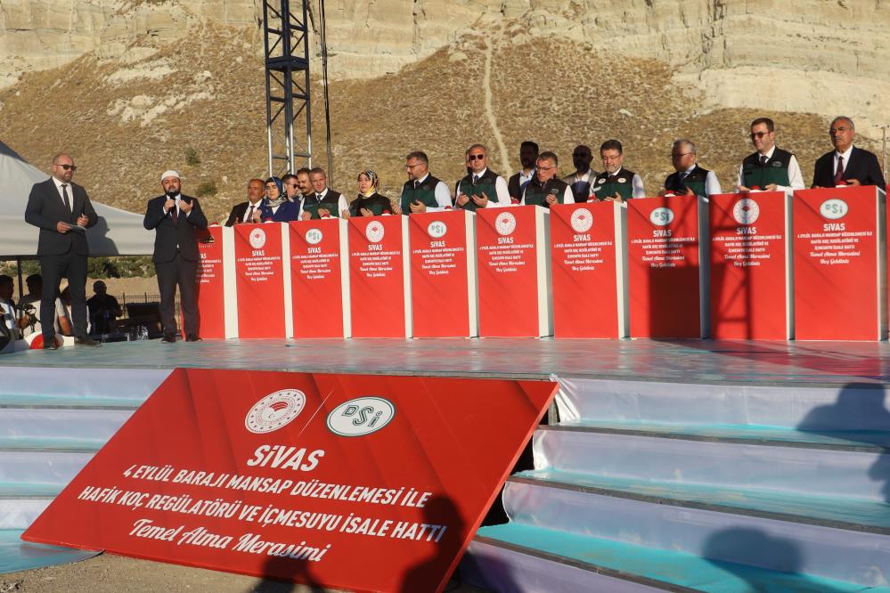 Tarım ve Orman Bakanı İbrahim Yumaklı, Sivas'ta 4 Eylül Barajı ile Mansap Düzenlemesi ve Hafik Koç Regülatörü temel atma törenine katıldı. Burada konuşan Yumaklı, Sivas'ta toplam 1,5 milyar lira maliyetli projelerin hayata geçirileceğini belirterek, "Bugün 4 Eylül Barajı mansap düzenlemesi çalışmalarının ve şehrimizin içme suyu meselesini çözüme kavuşturacak ‘Hafik Koç Regülatörü ve İçme Suyu İsale Hattı' işinin temellerini atacağız. Toplam 1,5 milyar lira maliyetle hayata geçecek bu yatırımların Sivas'ımıza hayırlı olmasını diliyorum. Suyun her damlasında kıymet, her damlasında hayat vardır. Bugünün dünyasında bunun önemi daha da ortaya çıkmış durumdadır. Bakanlık olarak bizler de tarımsal politikalarımızı bu vizyonla oluşturuyoruz. Birçok farklı disiplinden binlerce çalışma arkadaşımızla ülkemizin tarımsal üretimine, suyuna, ormanına, gıdasına yön veriyoruz. Tarım ve Orman Bakanlığı olarak tarımda modern sulamayı yaygınlaştırmak ve arazi toplulaştırması yapmak için var gücümüzle çalışıyoruz. Amacımız, tarım arazilerinden en yüksek verimi alabilmek ve musluklara sağlıklı içme suyu ulaştırmak" dedi.