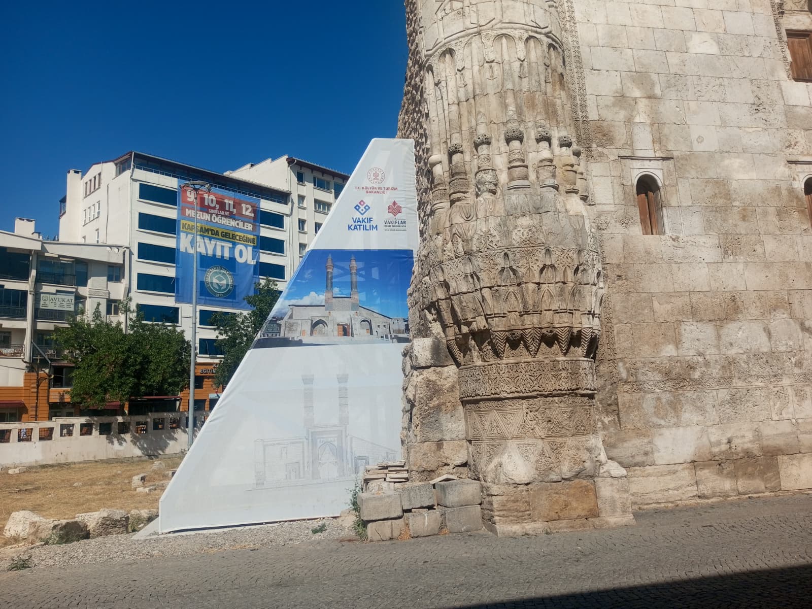 Sivas'ta tarihi kent meydanı denildiğinde akla ilk gelen ve şehrin en önemli simgelerinden biri olan Selçuklu yadigârı Çifte Minareli Medrese'nin bir kısmında restorasyon çalışmaları başladı. Tarihi yapının yan duvarlarının dibine beton atılmasıyla başlayan süreç, çalışma alanlarının Vakıflar Genel Müdürlüğü'nün adını taşıyan fileler ile kapatılmasıyla devam ediyor.
