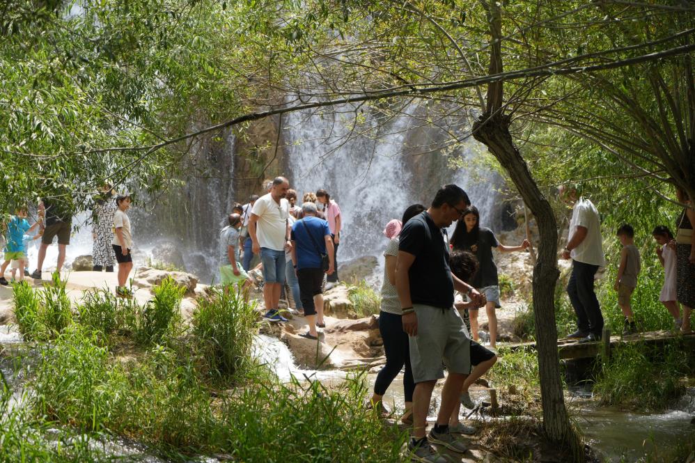 Aileleriyle birlikte piknik yapmak, şelalenin serin esintisi eşliğinde buz gibi suya girmek ve bu eşsiz manzarada hatıra fotoğrafı çektirmek için bölgeye gelen ziyaretçiler, keyifli anlar yaşıyor.