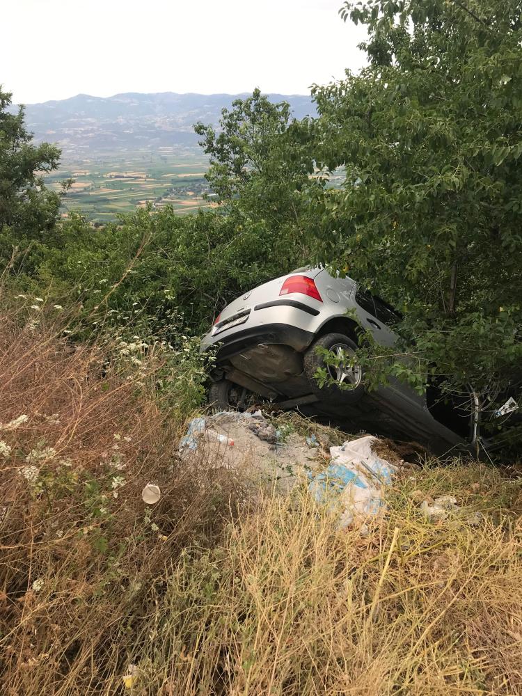 Tokat’ın Niksar ilçesinde meydana gelen trafik kazasında, kontrolden çıkan otomobil yol kenarına savrularak şarampole yuvarlandı.