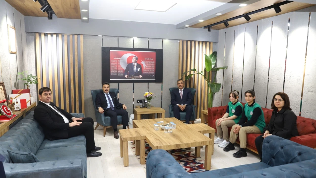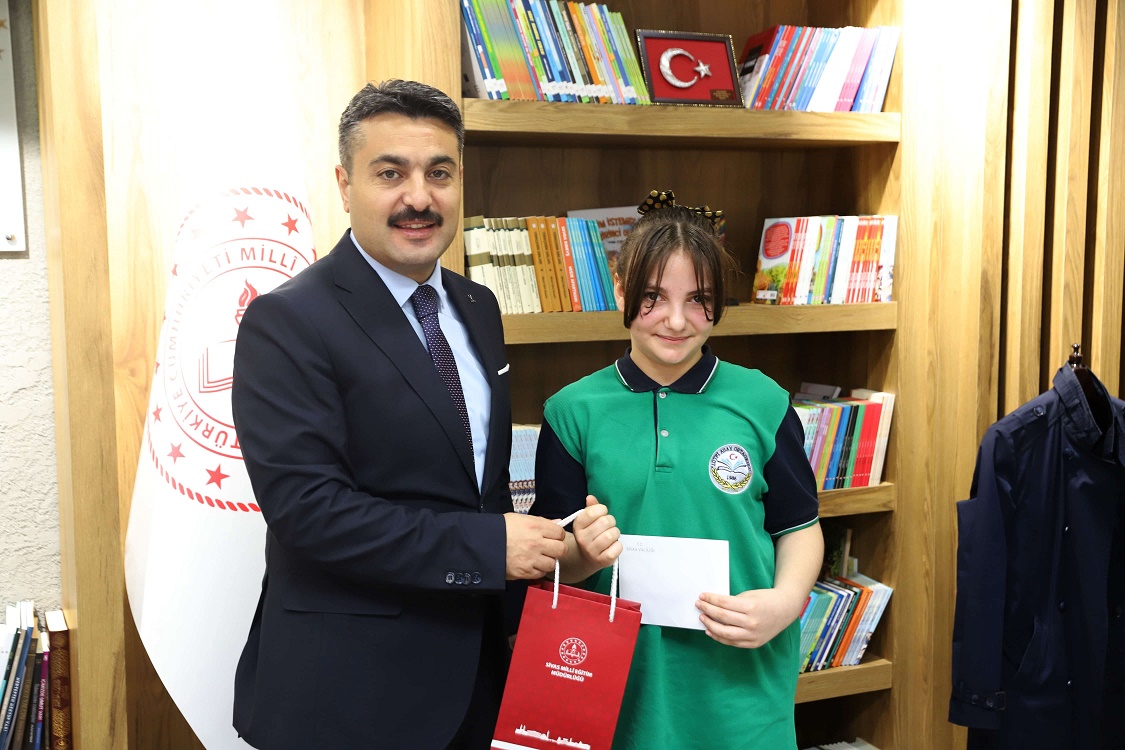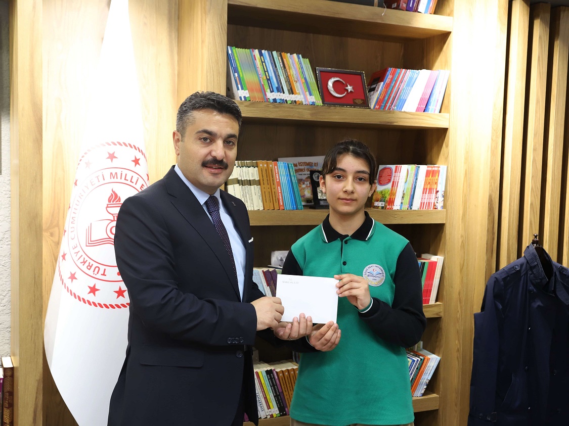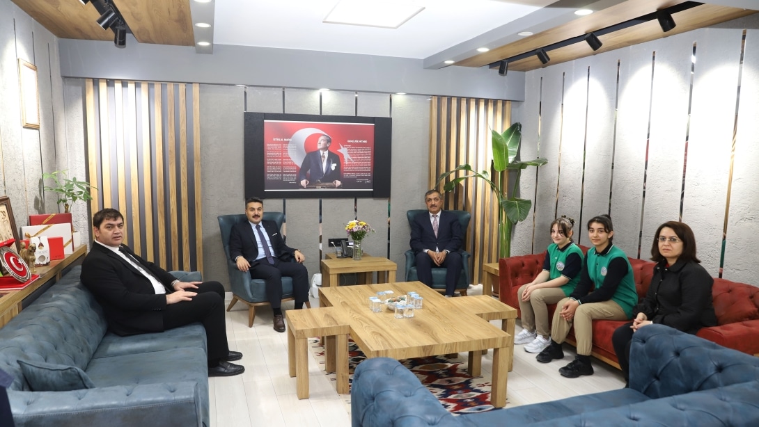 Başarılı öğrenciler, okul müdürleri ve öğretmenleriyle birlikte İl Millî Eğitim Müdürü Fatih Erdoğan'ı makamında ziyaret ederek tebrikleri kabul etti ve ödüllerini aldı.