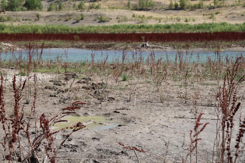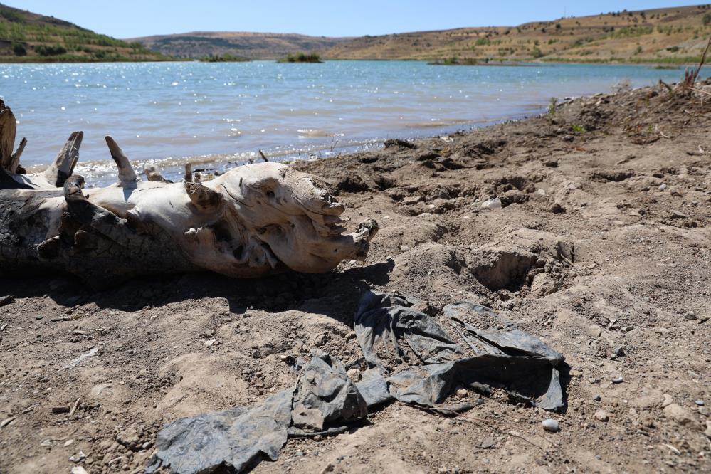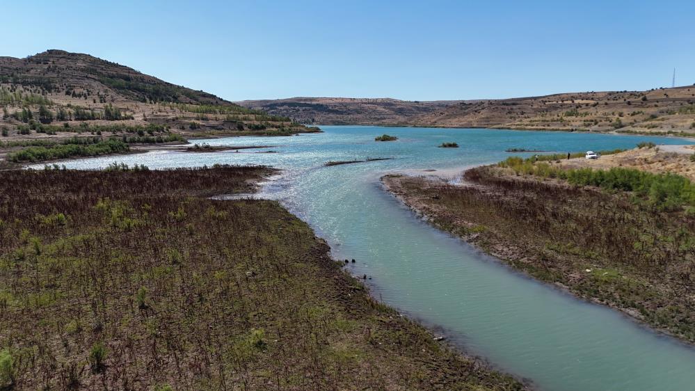 Sivas'ın önemli su kaynaklarından biri olan 4 Eylül barajında kuraklığın etkisiyle su seviyeleri önemli miktarda düştü, barajın zemini görüldü.