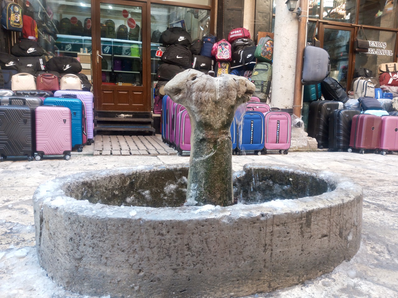 Tarihi iş merkezinin avlunun ortasında bulunan elip şeklindeki havuzun içerisinde çift başlı aslan figürlü su akan çeşmeler bulunmaktadır. Kesme taş ile inşa edilen kervansaray tarih boyunca ticaret kervanlarına, günümüzde ise Sivaslı esnafların işletmelerine ev sahipliği yapmaya devam etmektedir.