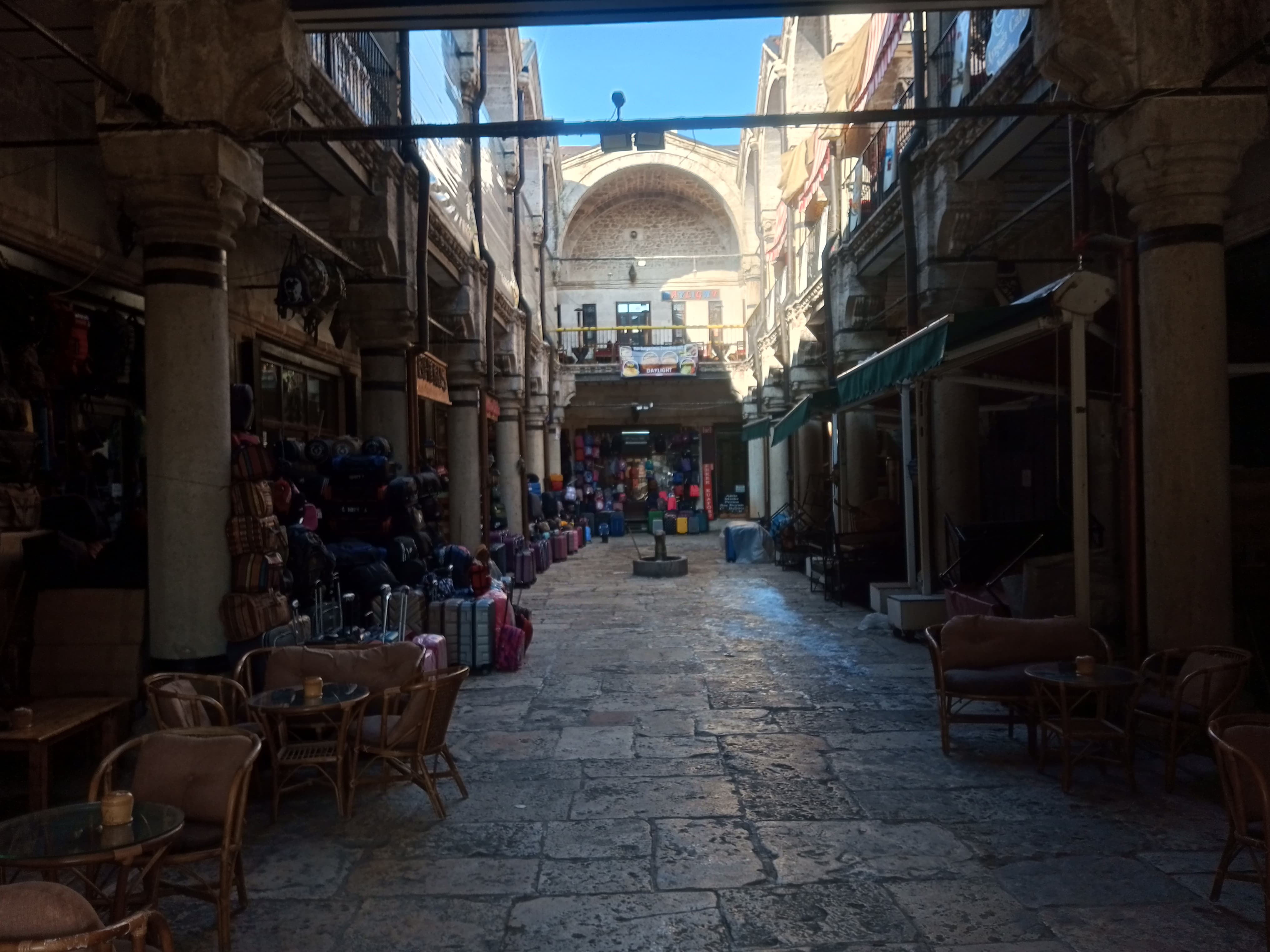 İki katlı ve üç girişi bulunan tarihi Taşhan'ın giriş yapıları, doğu, güney ve kuzey yönlerinde bulunuyor ve kanatlı demir kapılarının üzerinde kemerler bulunuyor.