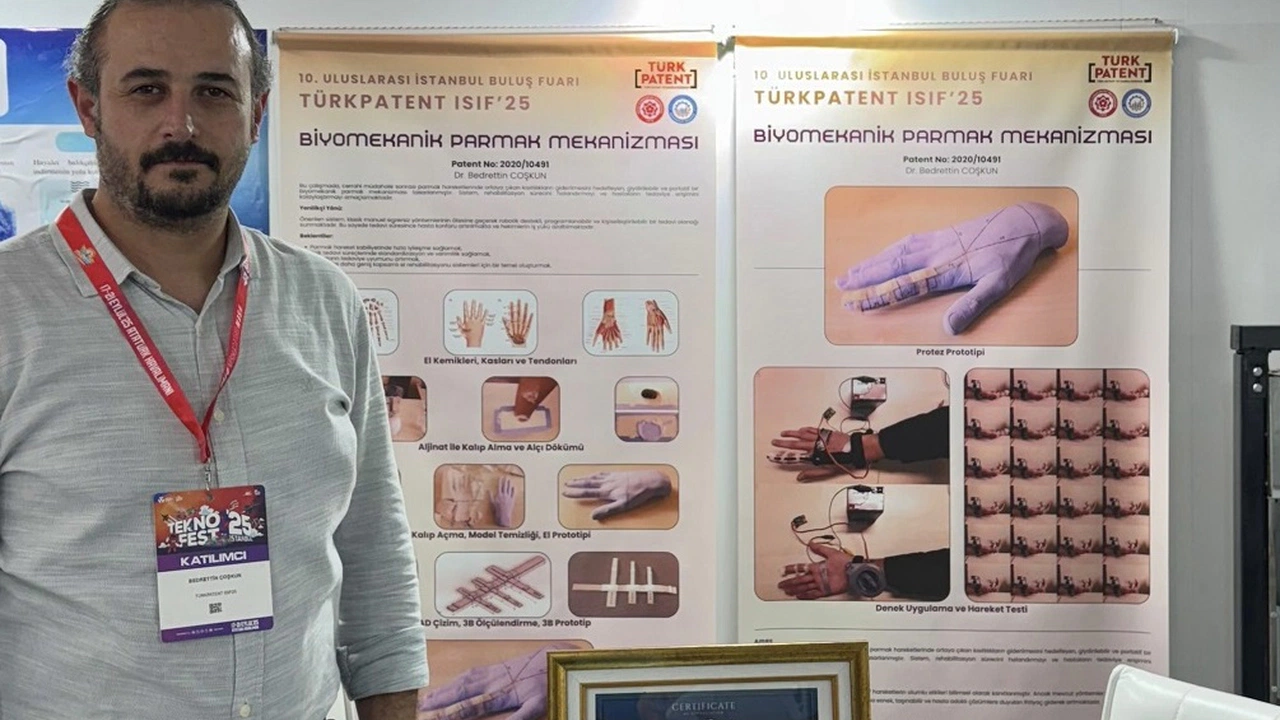 İstanbul’da bu yıl düzenlenen ve 23 farklı ülkeden buluşçunun katıldığı İstanbul Uluslararası Buluş Fuarı (ISIF’25), önemli bir başarıya sahne oldu. Sivas Cumhuriyet Üniversitesi akademisyenlerinden Arş. Gör. Dr. Bedrettin Coşkun, geliştirdiği “Biyomekanik Parmak Mekanizması” ile fuardan Bronz Madalya ile döndü.