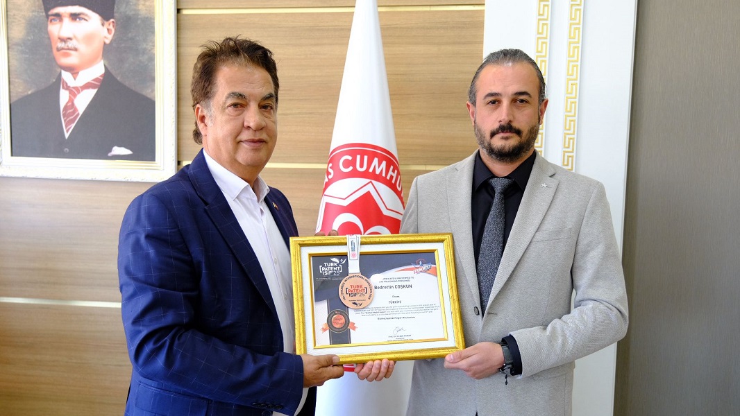 Sivas Cumhuriyet Üniversitesi’ni başarıyla temsil eden Dr. Coşkun, patentli buluşuyla hem rehabilitasyon teknolojilerine yenilikçi bir katkı sundu hem de üniversitesine uluslararası arenada gurur yaşattı. Akademisyen, Rektör Prof. Dr. Ahmet Şengönül’ü makamında ziyaret ederek hem madalyasını takdim etti hem de desteklerinden dolayı teşekkürlerini iletti.